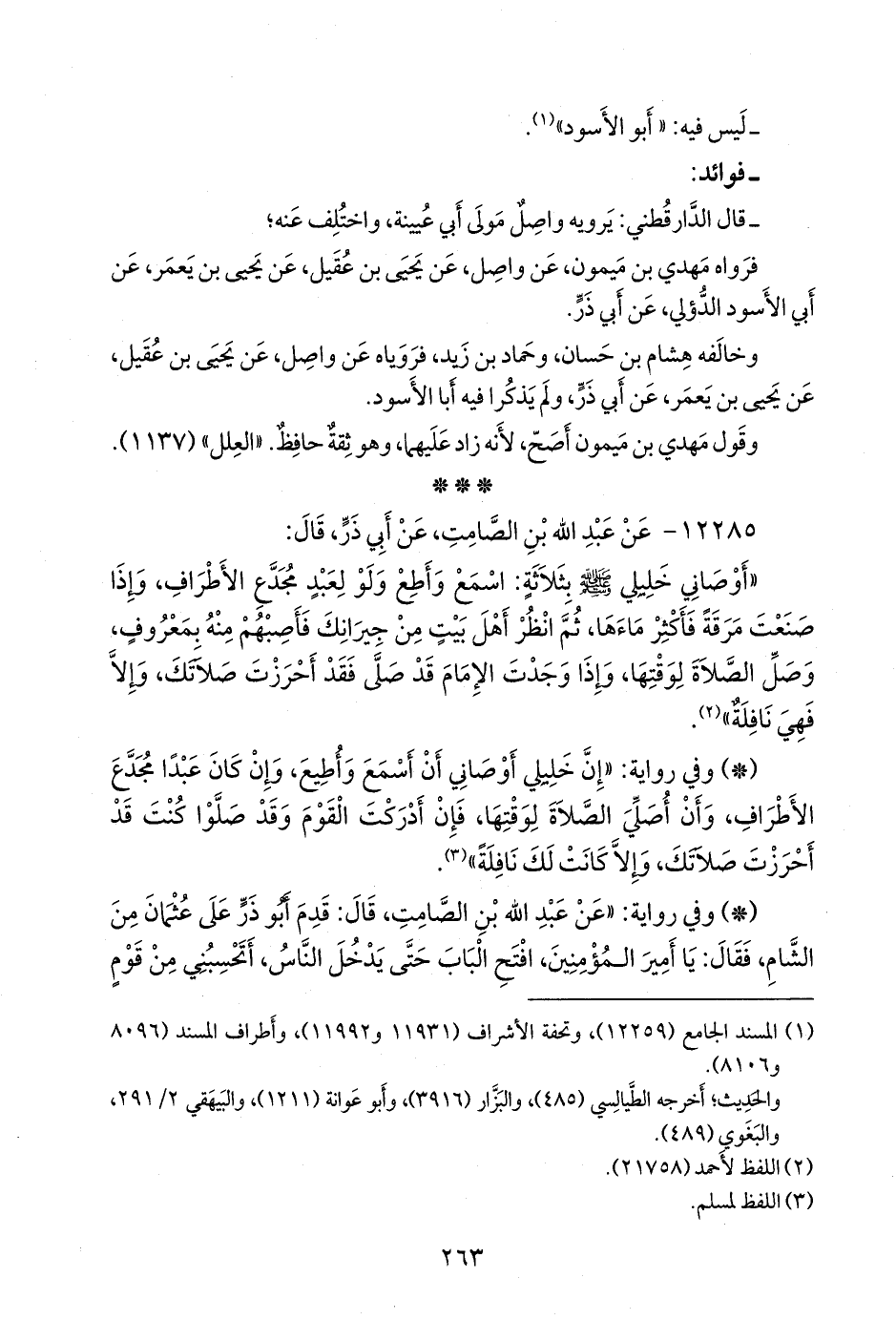 ١٢٢٨٥ - عن عبد الله بن الصامت، قال: لما قدم أبو ذر على عثمان من الشام، فقال: