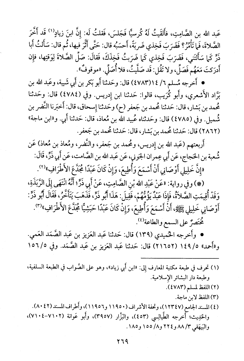 أربعتهم (عبد الله بن إدريس، ومحمد بن جعفر، والنضر، ومعاذ بن معاذ) عن شعبة بن الحجاج، عن أبي عمران الجَوني، عن عبد الله بن الصامت، عن أبي ذر، قال: