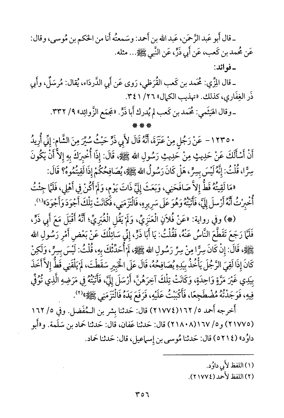 - وقال الهيثمي: محمد بن كعب لم يدرك أبا ذر. «مَجمَع الزوائد» ٩/ ٣٣٢.