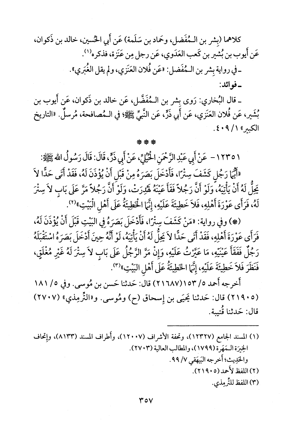 (¬٣) المسند الجامع (١٢٣٢٨)، وتحفة الأشراف (١١٩٦٠)، وأطراف المسند (٨١٢٠)، ومَجمَع الزوائد ٦/ ٢٩٥ و ٨/ ٤٣.