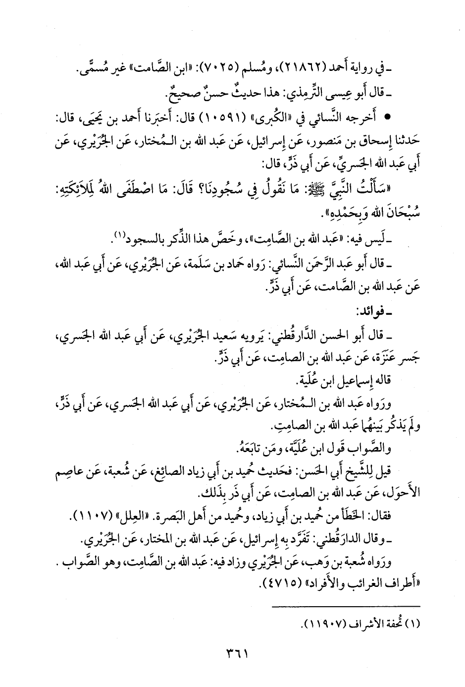 ورواه شعبة بن وهب، عن الجُريري وزاد فيه: عبد الله بن الصامت، وهو الصواب. «أطراف الغرائب والأفراد» (٤٧١٥).