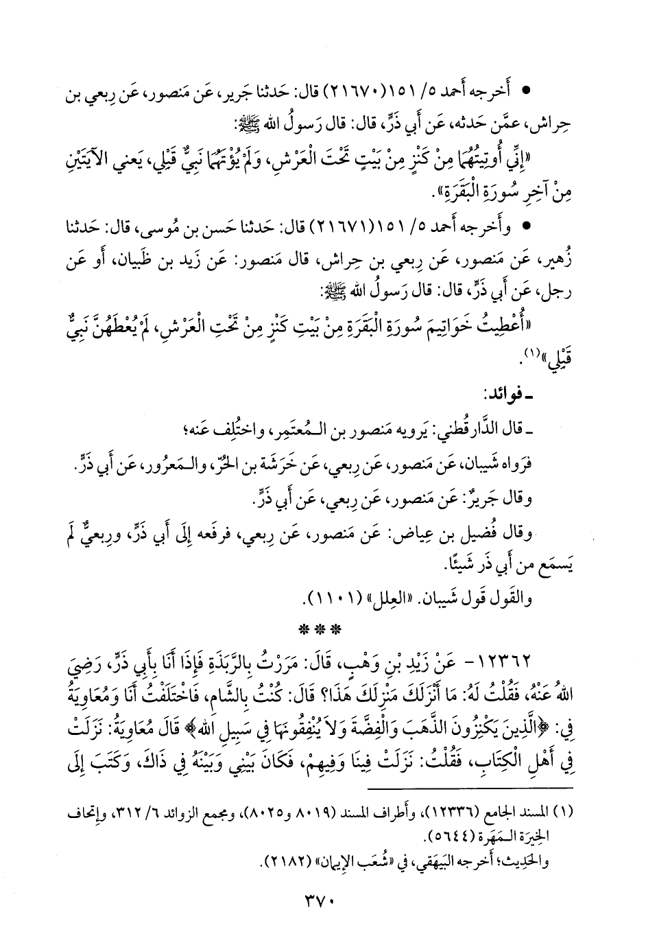 • أخرجه أحمد (٢١٦٧٠) قال: حدثنا جرير، عن منصور، عن رِبعي بن حِراش، عَمَّن حدثه، عن أبي ذر، قال: قال رسول الله صَلى الله عَليه وسَلم:
