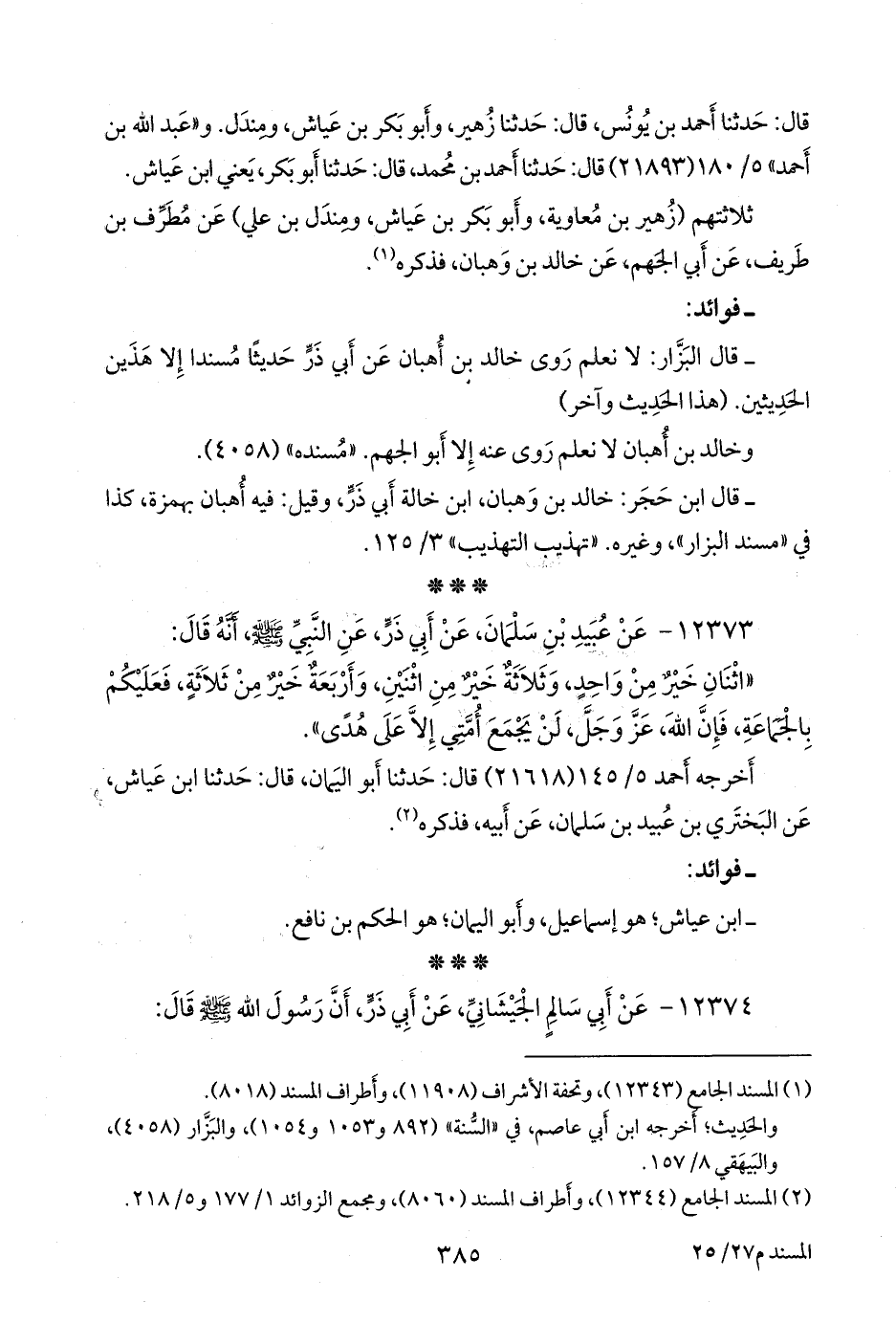 (¬٢) المسند الجامع (١٢٣٤٥)، وتحفة الأشراف (١١٩١٩)، وأطراف المسند (٨١١٦).