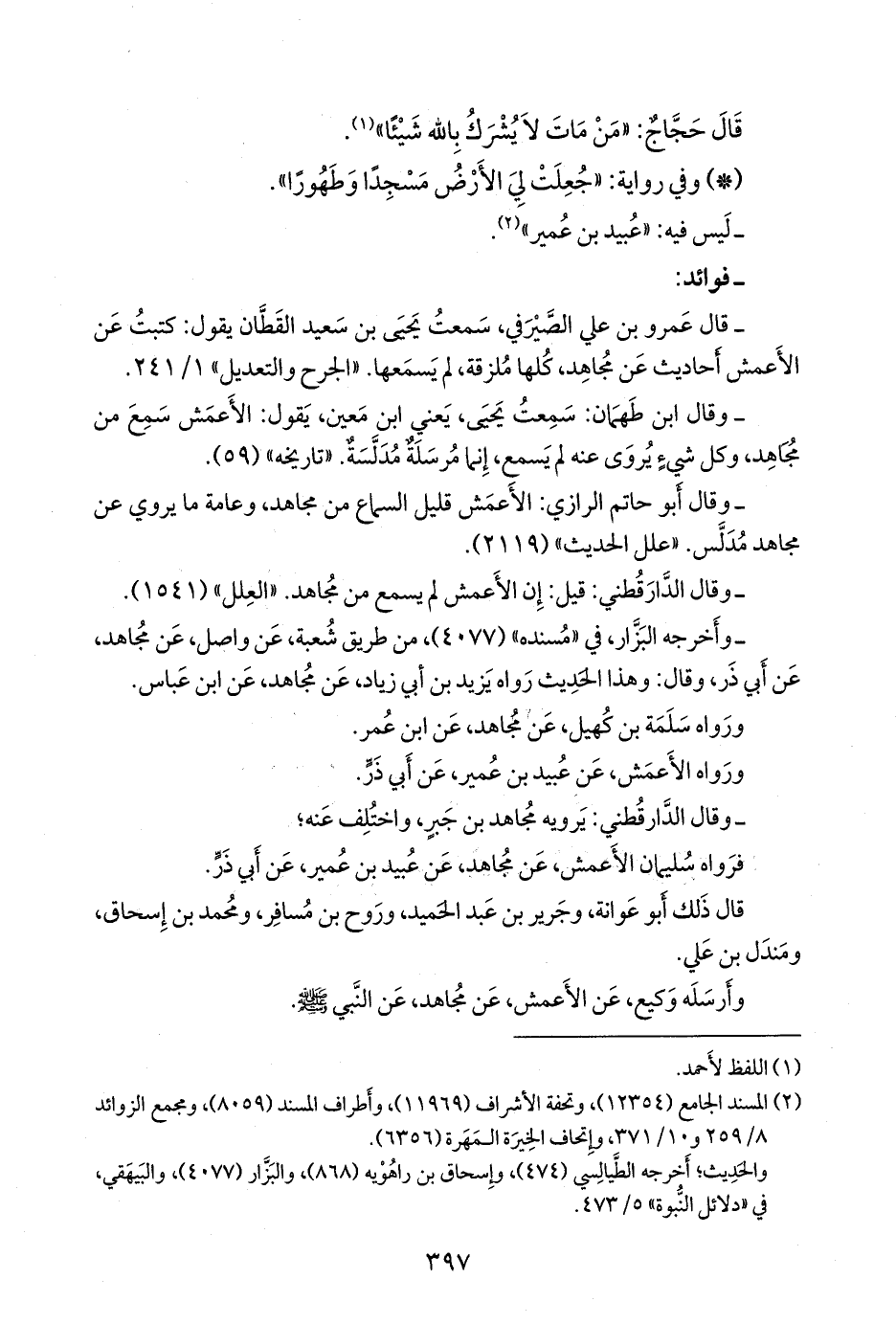 وقيل: عن بحر السقاء، عن الأعمش، عن عَمرو بن مُرَّة، عن مجاهد، ففي هاتين الروايتين بيان أن الأعمش لم يسمعه من مجاهد.