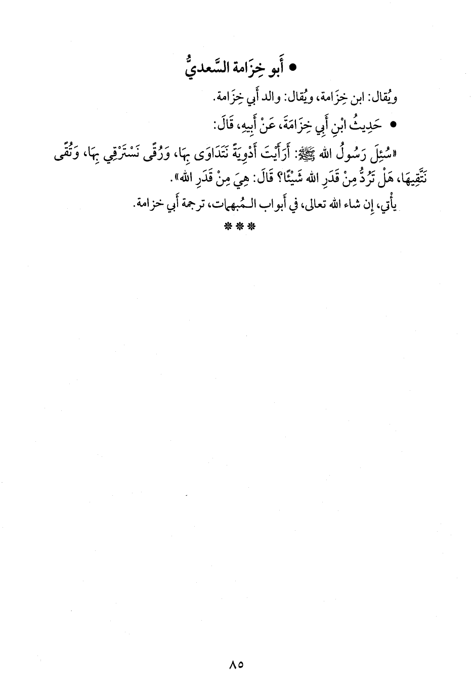 «قلت: يا رسول الله، أرأيت دواء نتداوى به، ورقى نسترقي بها، وتقى نتقيها، أترد من قدر الله، تبارك وتعالى، شيئا قال إنها من قدر الله تبارك وتعالى».