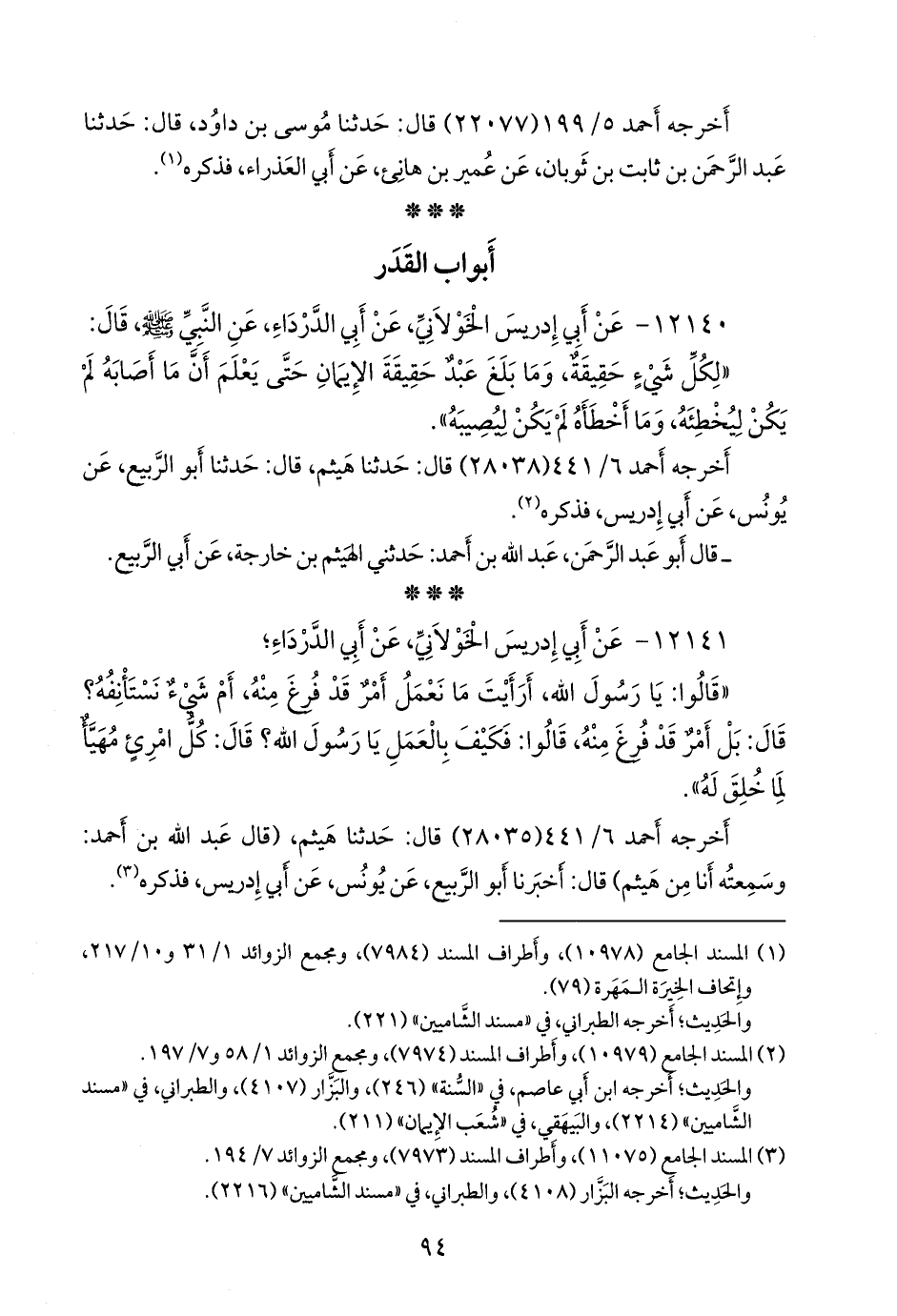 (¬١) المسند الجامع (١٠٩٧٩)، وأطراف المسند (٧٩٧٤)، ومَجمَع الزوائد ١/ ٥٨ و ٧/ ١٩٧.