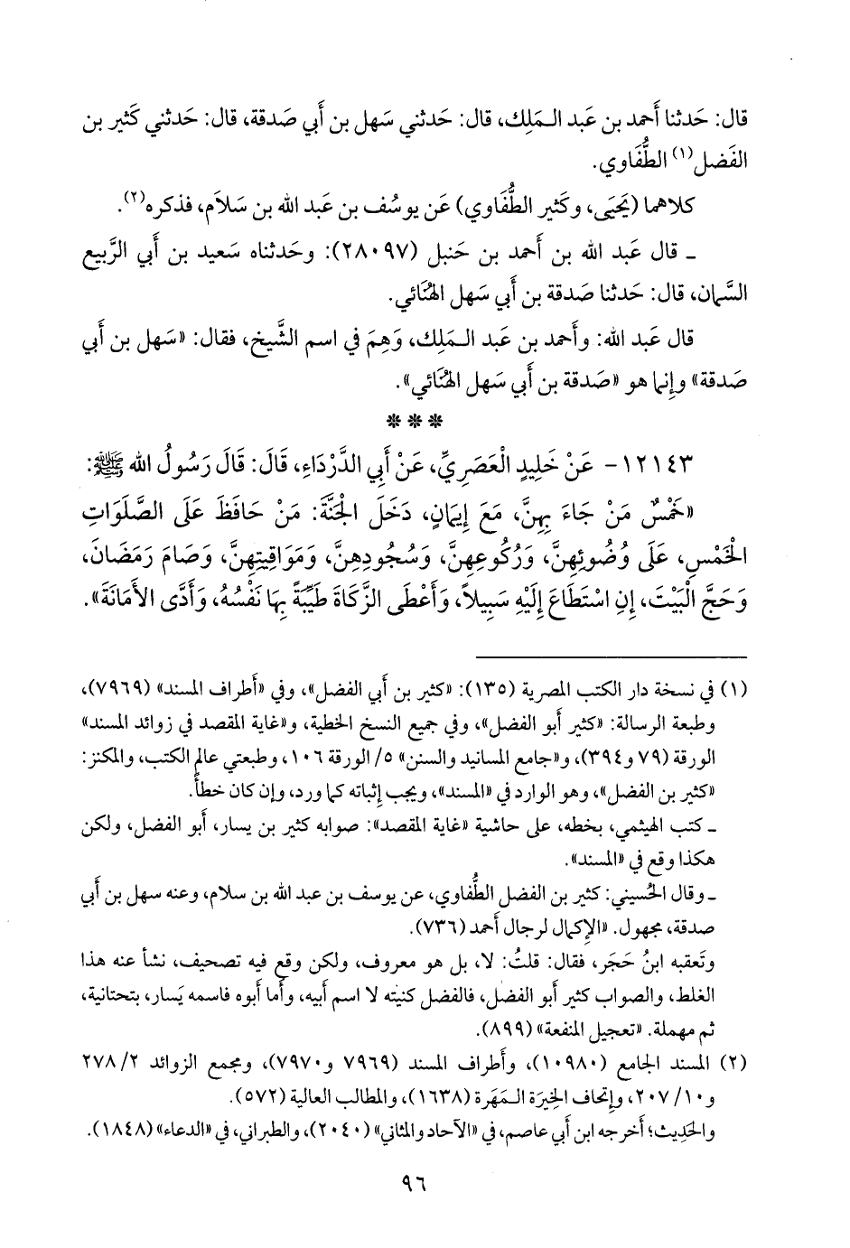 (¬١) المسند الجامع (١٠٩٧٧)، وتحفة الأشراف (١٠٩٣٠)، ومَجمَع الزوائد ١/ ٤٧.
