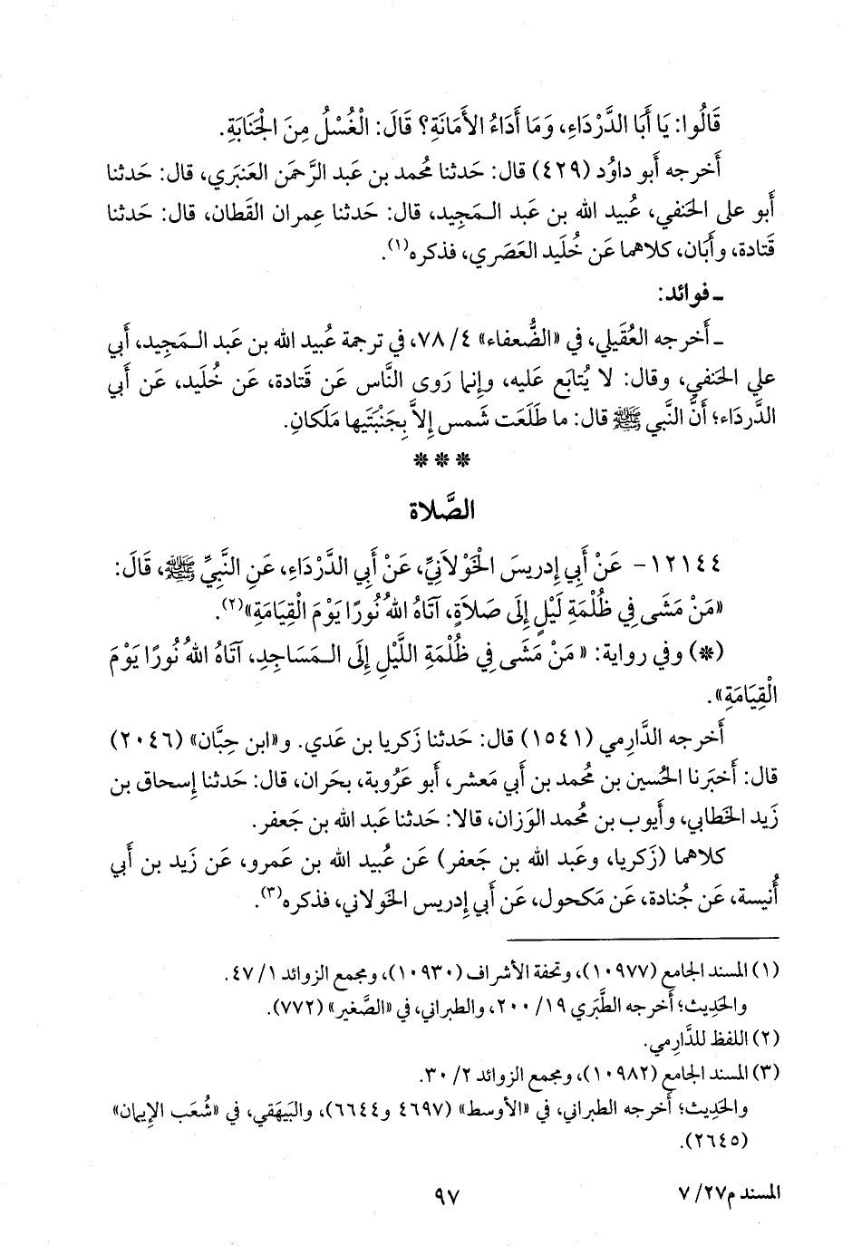 ١٢١٤٤ - عن أبي إدريس الخَولاني، عن أبي الدرداء، عن النبي صَلى الله عَليه وسَلم قال: