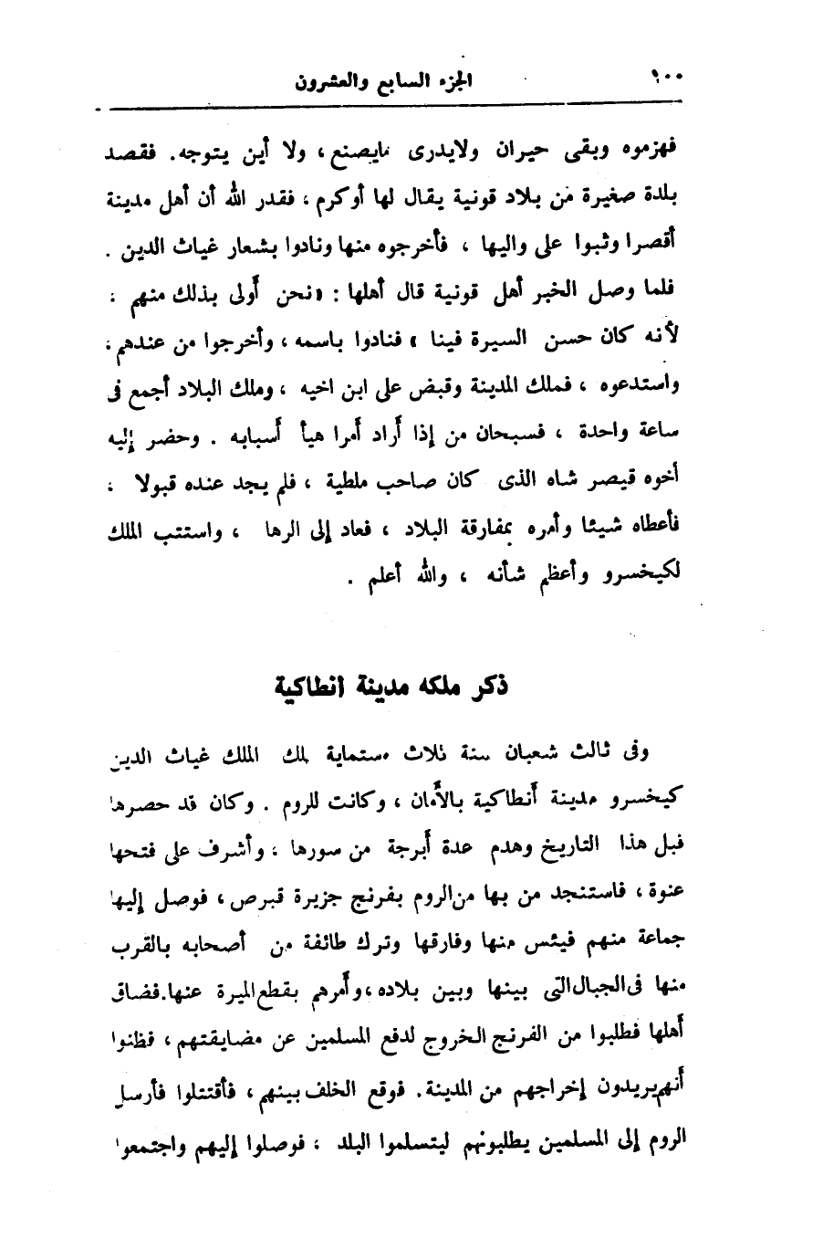 وفى ثالث شعبان سنة ثلاث ستماية ملك الملك غياث الدين كيخسرو مدينة أنطاكية بالأمان، وكانت للروم. وكان قد حصرها قبل هذا التاريخ وهدم عدة أبرجة من سورها، وأشرف على فتحها عنوة، فاستنجد من بها من الروم بفرنج جزيرة قبرص، فوصل إليها جماعة منهم فيئس منها وفارقها وترك طائفة من أصحابه بالقرب منها فى الجبال التى بينها وبين بلاده، وأمرهم بقطع الميرة عنها. فضاق أهلها فطلبوا من الفرنج الخروج لدفع المسلمين عن مضايقتهم، فظنوا أنهم يريدون إخراجهم من المدينة. فوقع الخلف بينهم، فأقتتلوا فأرسل الروم إلى المسلمين يطلبونهم ليتسلموا البلد، فوصلوا إليهم واجتمعوا