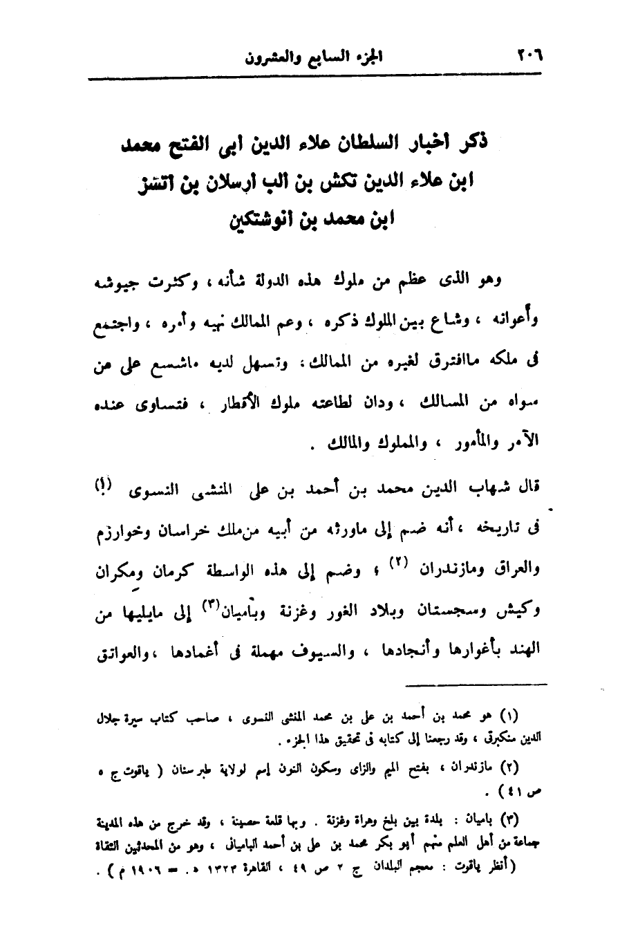 ذكر أخبار السلطان علاء الدين أبى الفتح محمد ابن علاء الدين تكش بن ألب أرسلان بن أتسز ابن محمد بن أنوشتكين