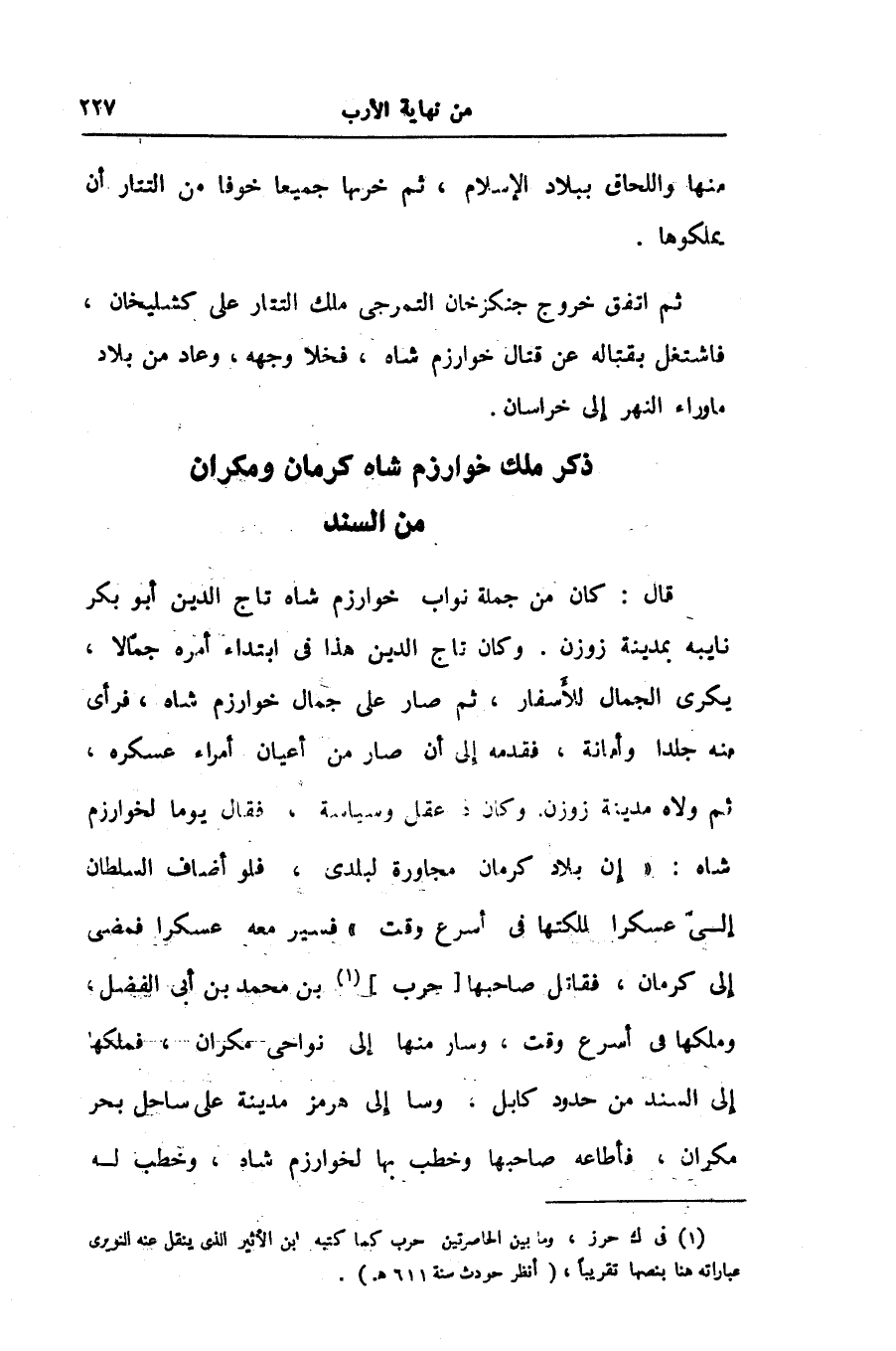 ذكر ملك خوارزم شاه كرمان ومكران من السند
