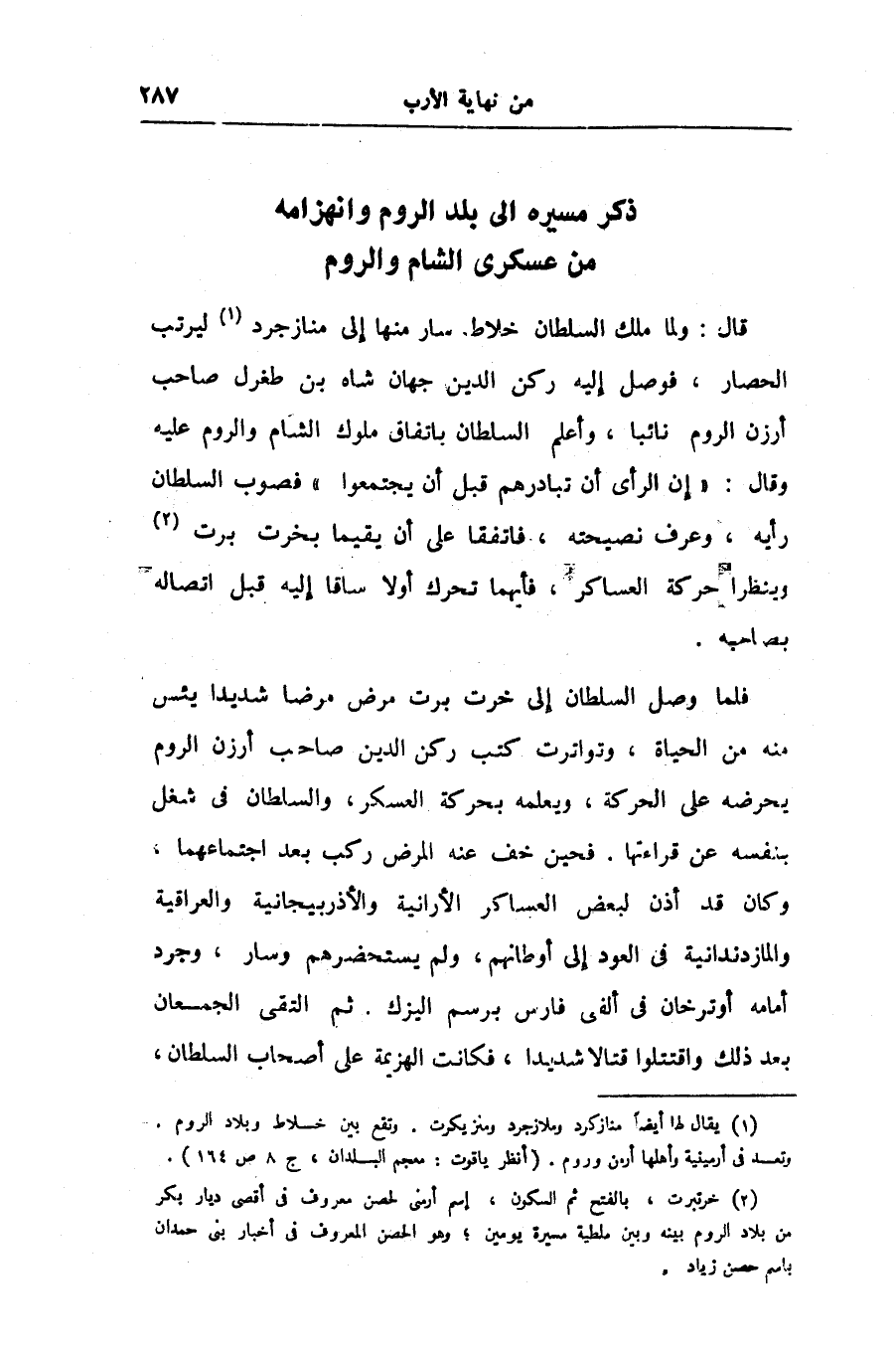 ذكر مسيره الى بلد الروم وانهزامه من عسكرى الشام والروم