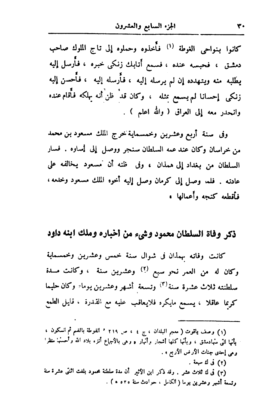 ذكر وفاة السلطان محمود وشىء من اخباره وملك ابنه داود