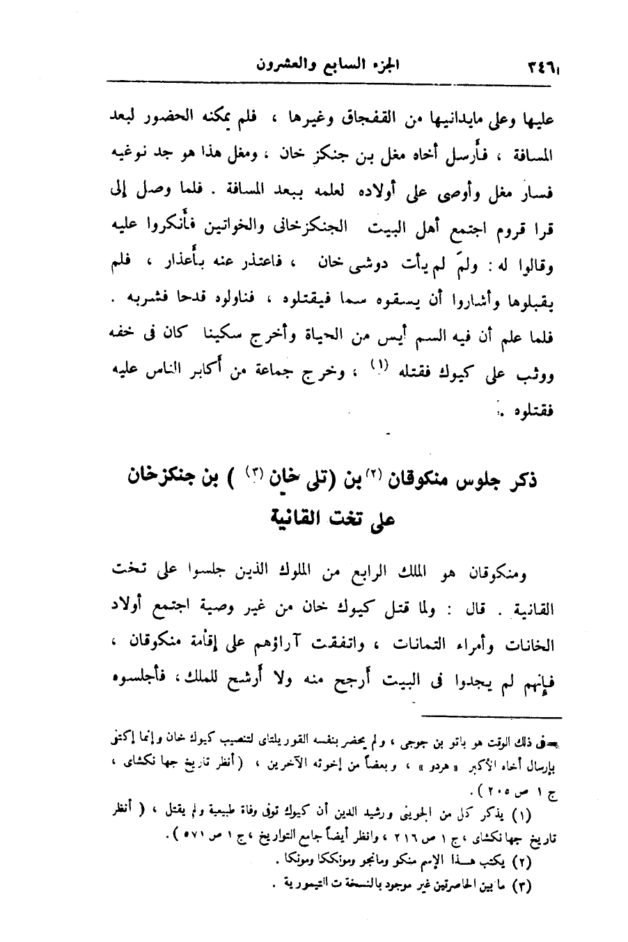 ذكر جلوس منكوقان «2» بن (تلى خان «3» ) بن جنكزخان على تخت القانية