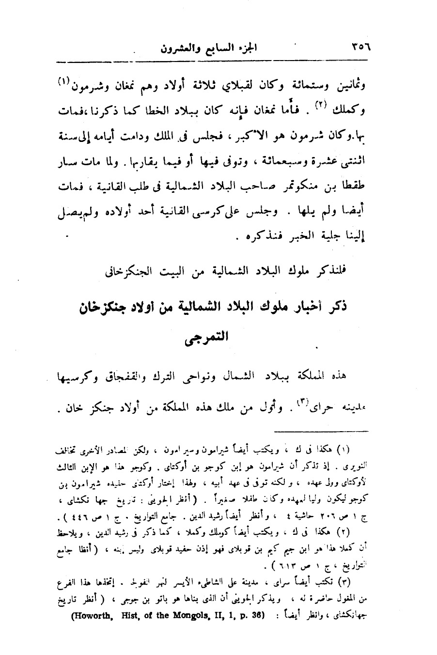 ذكر أخبار ملوك البلاد الشمالية من أولاد جنكزخان التمرجى