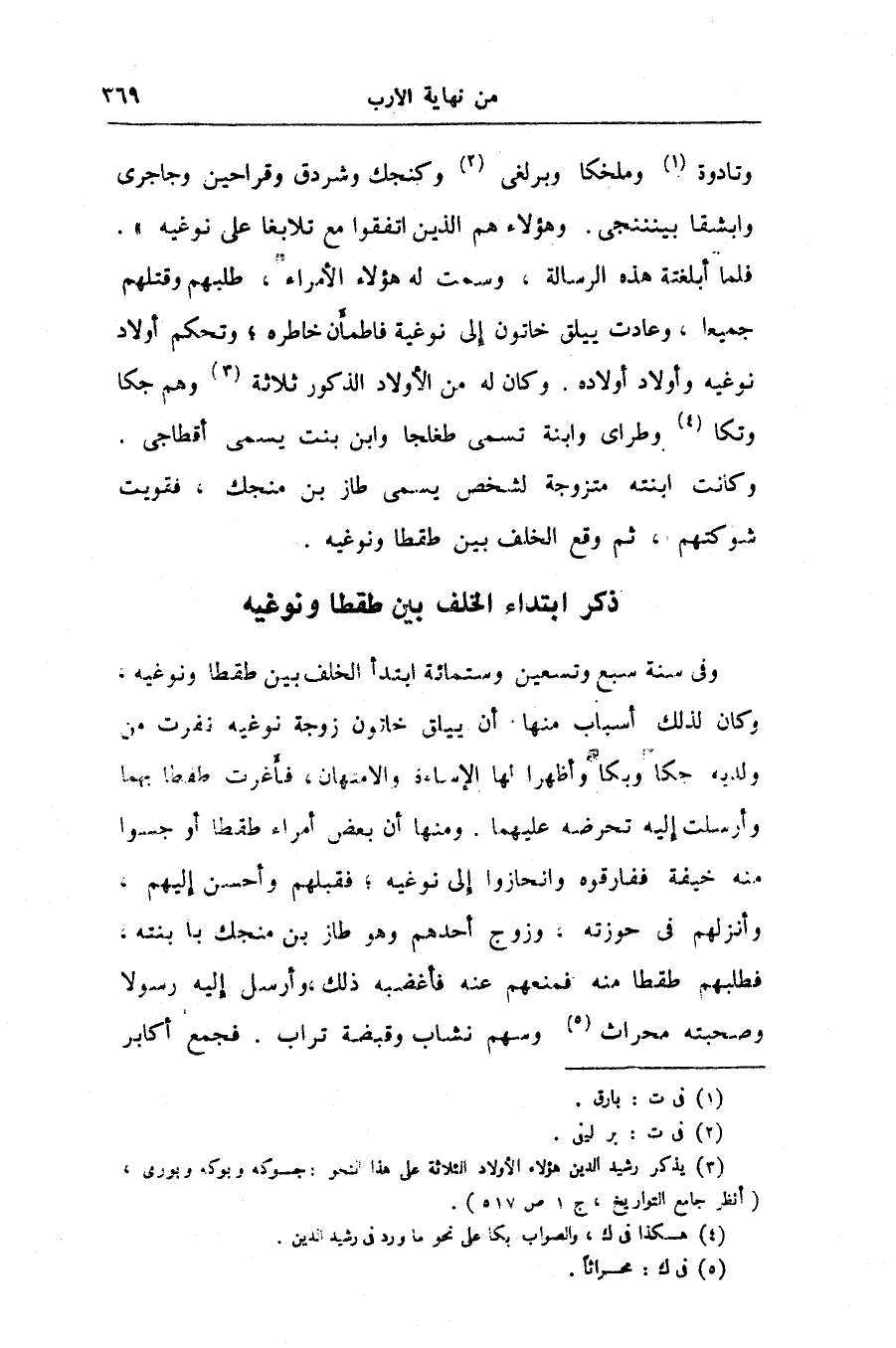 ذكر ابتداء الخلف بين طقطا ونوغيه