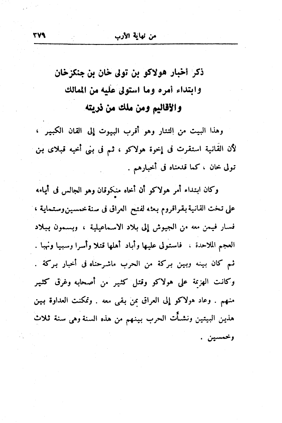ذكر أخبار هولاكو بن تولى خان بن جنكزخان وابتداء أمره وما استولى عليه من الممالك والأقاليم ومن ملك من ذريته