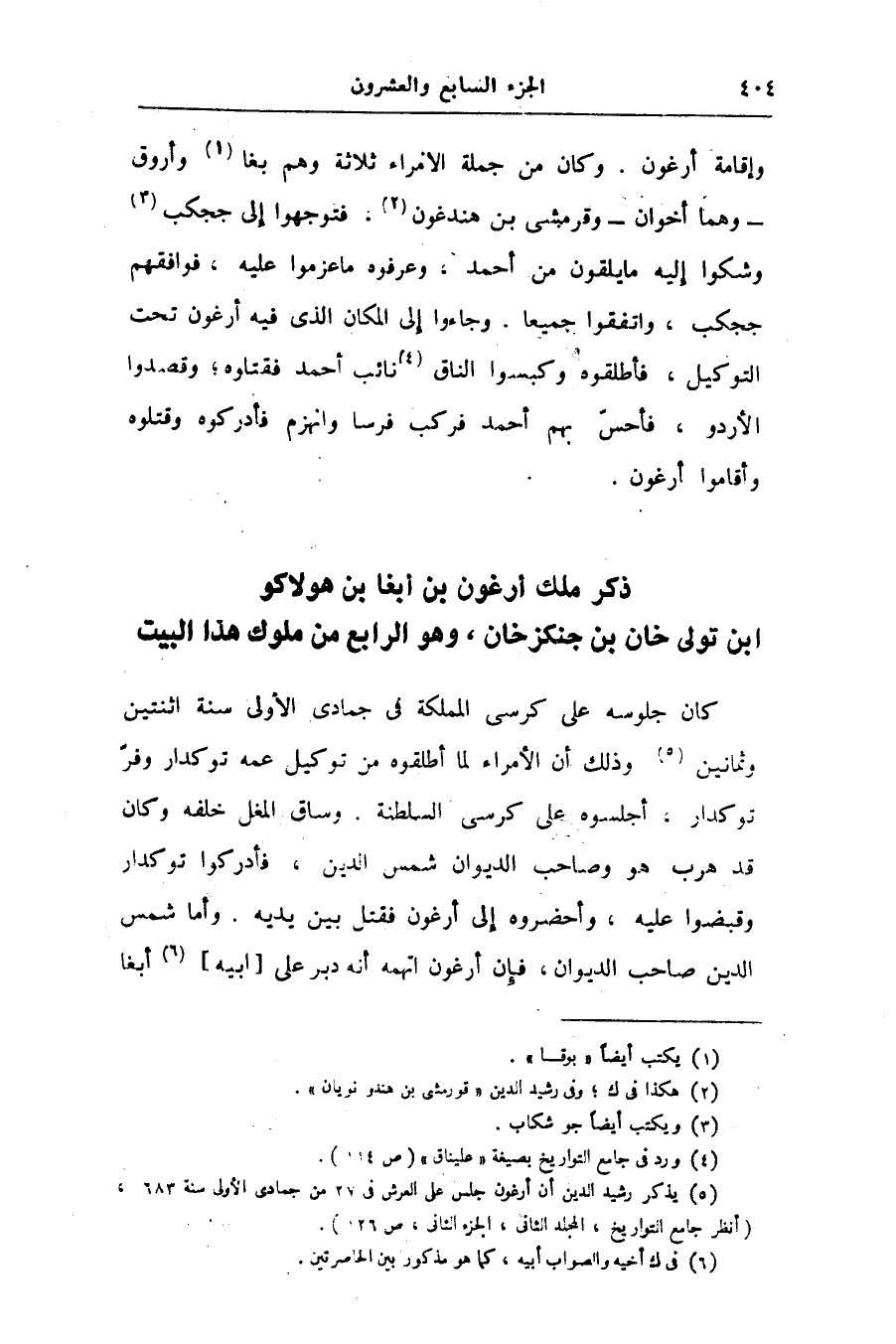 ذكر ملك أرغون بن أبغا بن هولاكو ابن تولى خان بن جنكزخان، وهو الرابع من ملوك هذا البيت