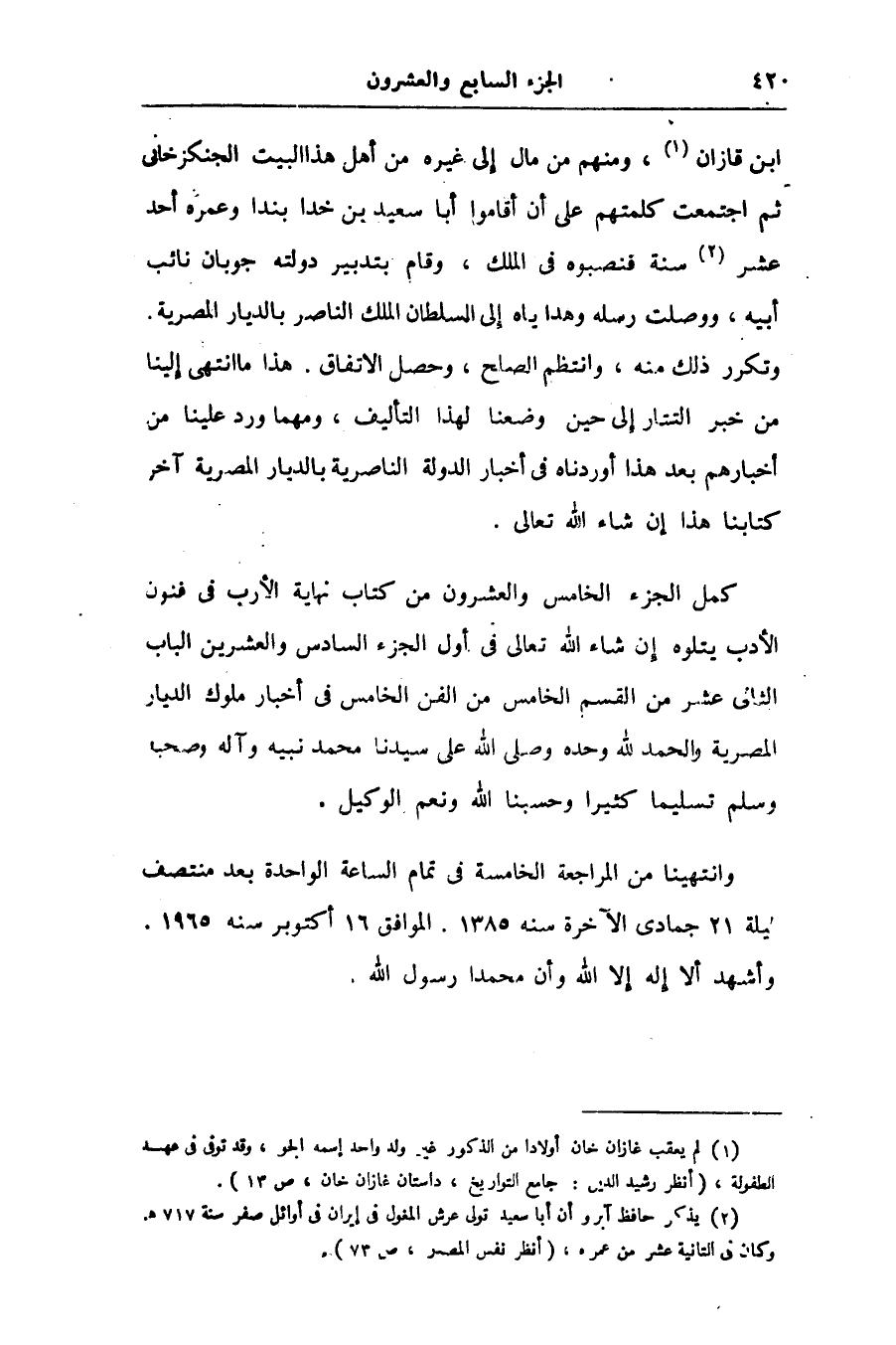 وانتهينا من المراجعة الخامسة فى تمام الساعة الواحدة بعد منتصف ليلة 21 جمادى الآخرة سنه 1385. الموافق 16 أكتوبر سنه 1965.