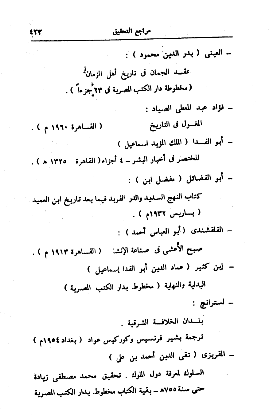 السلوك لمعرفة دول الملوك. تحقيق محمد مصطفى زيادة حتى سنة 755 هـ- بقية الكتاب مخطوط بدار الكتب المصرية