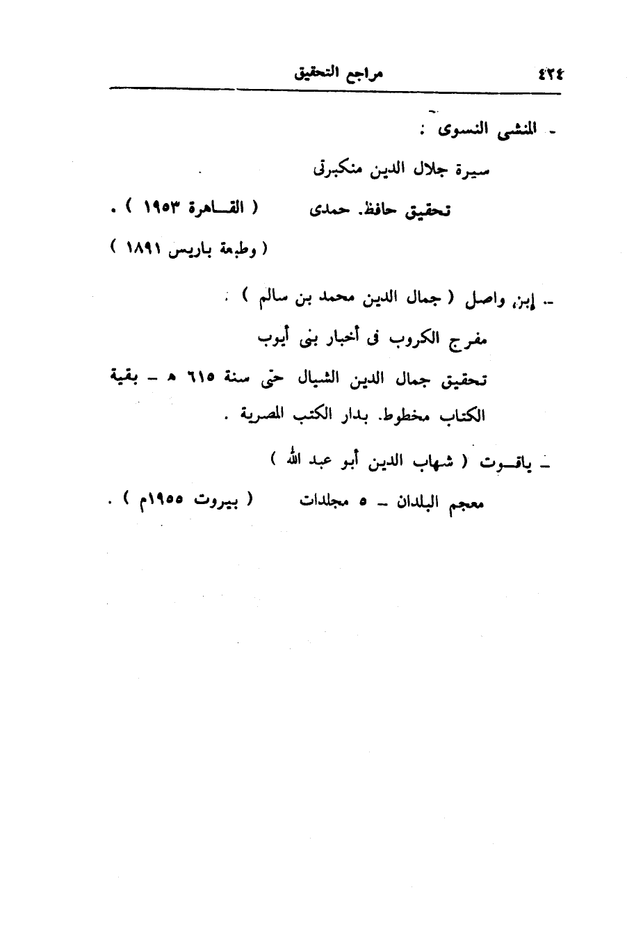 سيرة جلال الدين منكبرتى تحقيق حافظ حمدى (القاهرة 1953) .