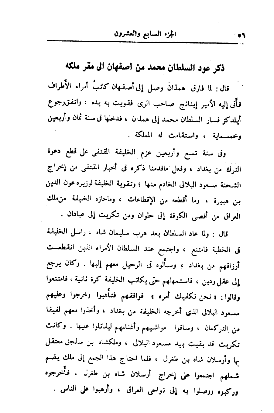 ذكر عود السلطان محمد من أصفهان الى مقر ملكه