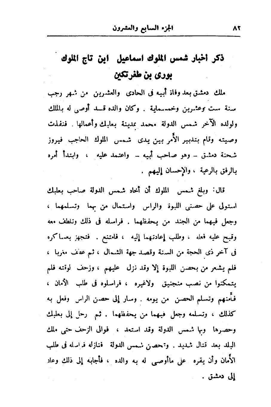 ذكر أخبار شمس الملوك اسماعيل ابن تاج الملوك بورى بن طغرتكين