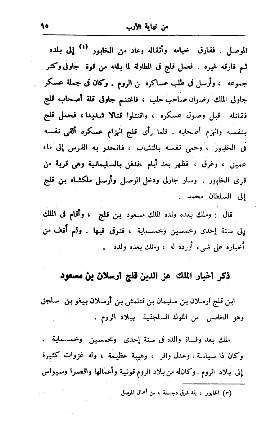 قال: وملك بعده ولده الملك مسعود بن قلج، [وهو الرابع من الملوك السلجقية ببلاد الروم.]
