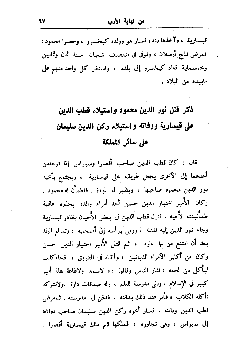 ذكر قتل نور الدين محمود واستيلاء قطب الدين على قيسارية ووفاته واستيلاء ركن الدين سليمان على سائر المملكة