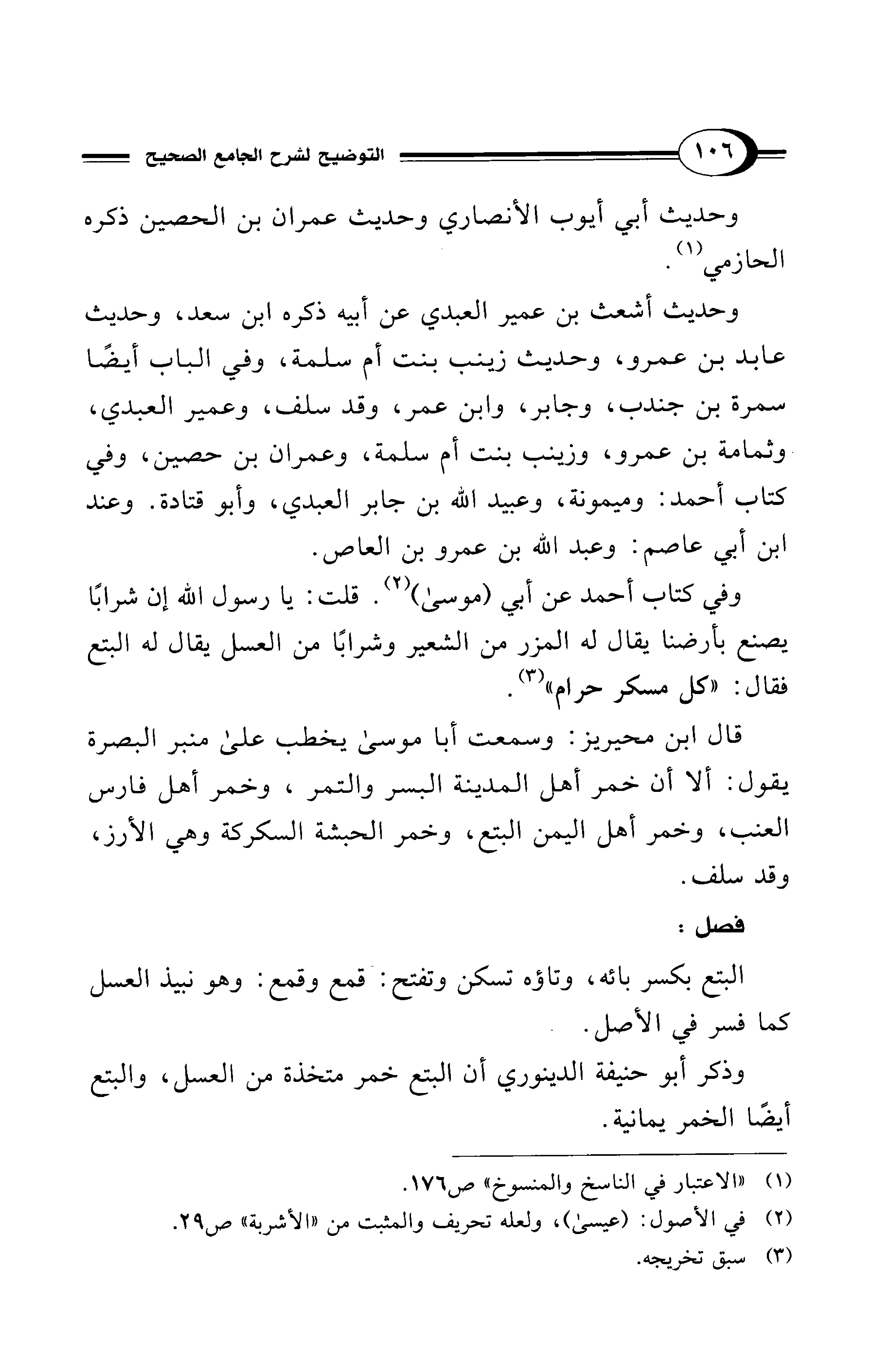 وحديث أبي أيوب الأنصاري وحديث عمران بن الحصين ذكره الحازمي (¬1).