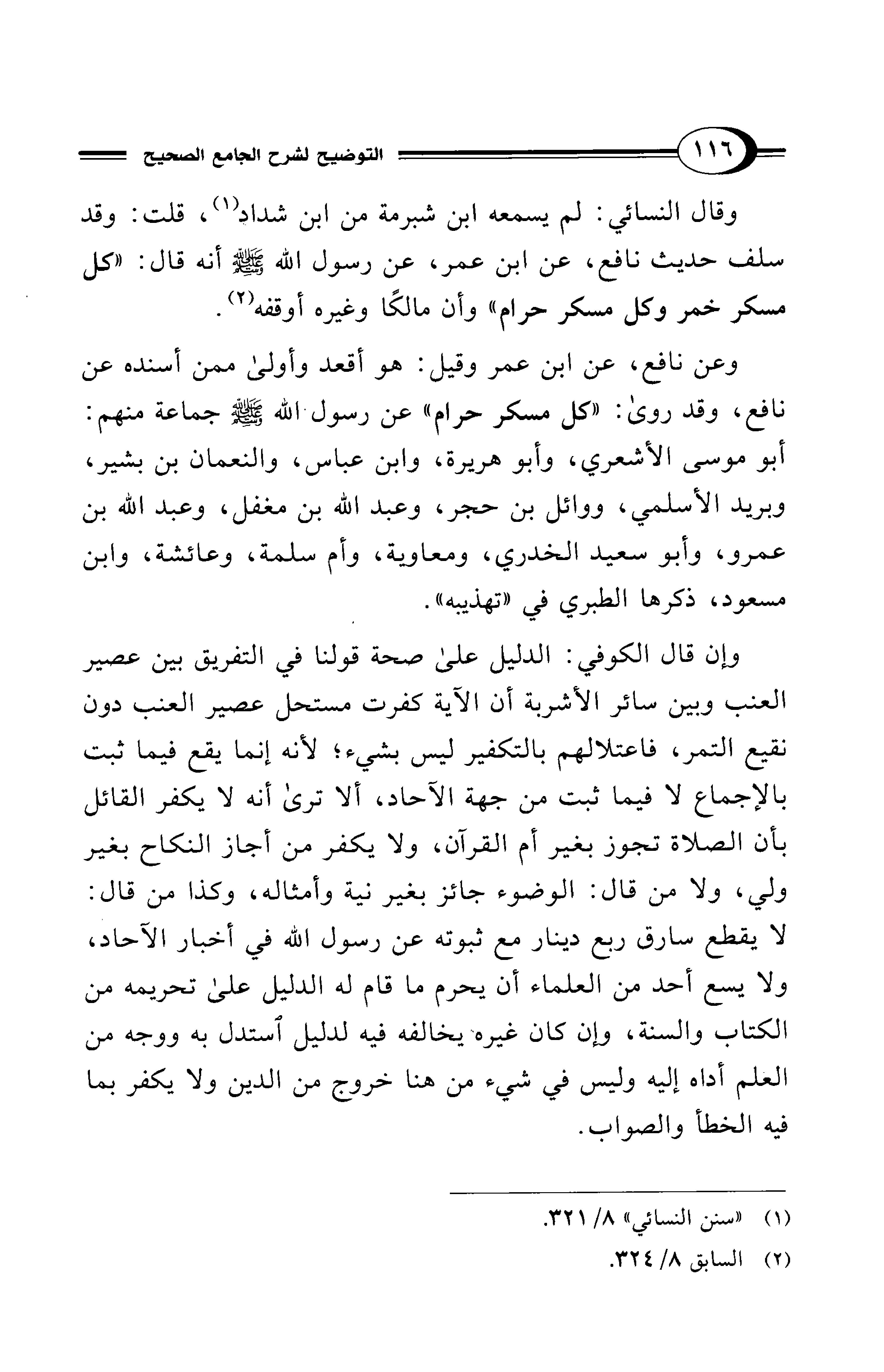 وقال النسائي: لم يسمعه ابن شبرمة من ابن شداد (¬1)، قلت: وقد سلف حديث نافع، عن ابن عمر، عن رسول الله - صلى الله عليه وسلم - أنه قال: "كل مسكر خمر وكل مسكر حرام " وأن مالكًا وغيره أوقفه (¬2).