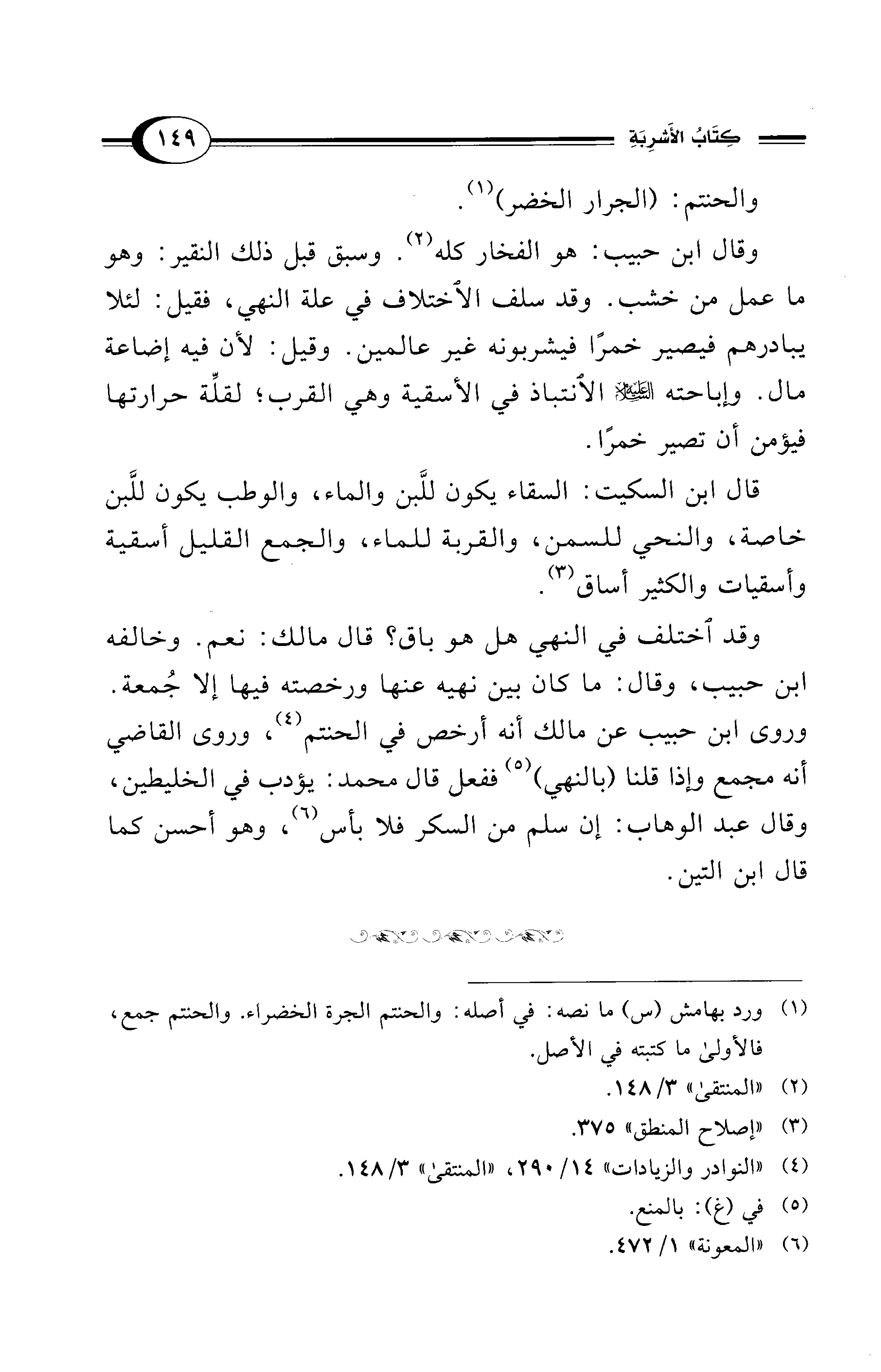 (¬1) ورد بهامش (س) ما نصه: في أصله: والحنتم الجرة الخضراء. والحنتم جمع، فالأولى ما كتبته في الأصل.