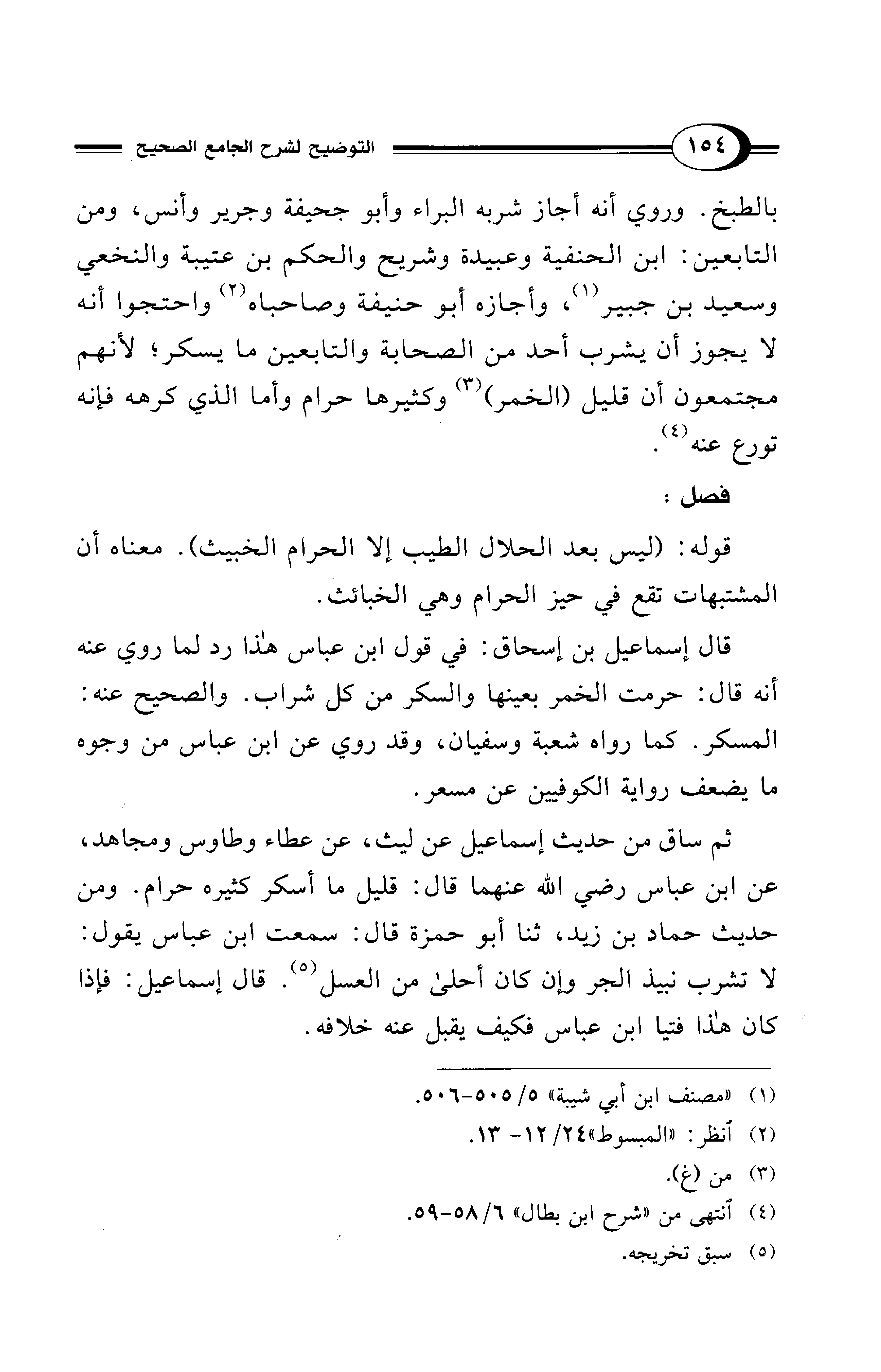 ثم ساق من حديث إسماعيل عن ليث، عن عطاء وطاوس ومجاهد، عن ابن عباس - رضي الله عنهما - قال: قليل ما أسكر كثيره حرام. ومن حديث حماد بن زيد، ثنا أبو حمزة قال: سمعت ابن عباس يقول: لا تشرب نبيذ الجر وإن كان أحلى من العسل (¬5). قال إسماعيل: فإذا كان هذا فتيا ابن عباس فكيف يقبل عنه خلافه.