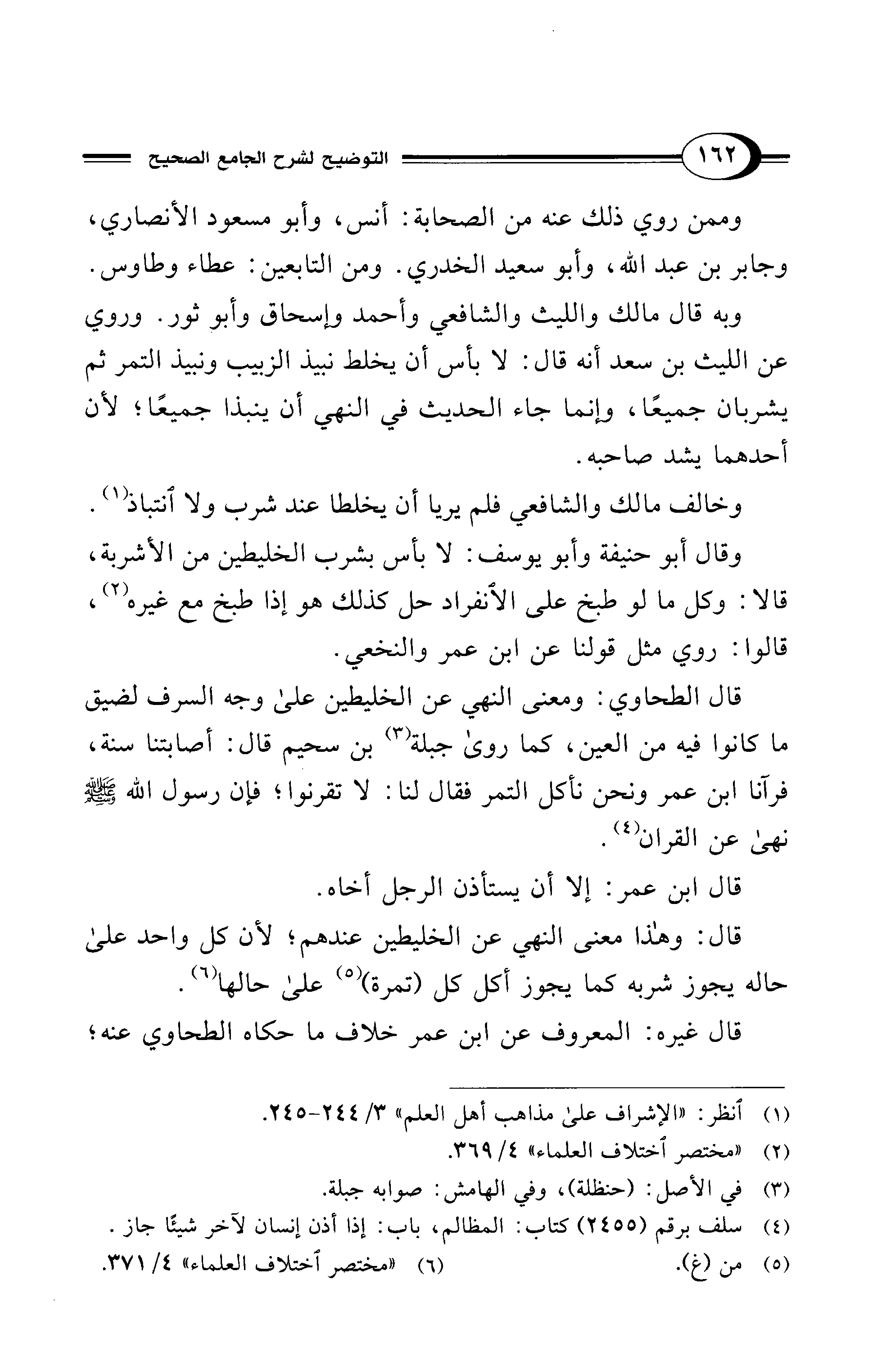 قال الطحاوي: ومعنى النهي عن الخليطين على وجه السرف لضيق ما كانوا فيه من العين، كما روى جبلة (¬3) بن سحيم قال: أصابتنا سنة، فرآنا ابن عمر ونحن نأكل التمر فقال لنا: لا تقرنوا؛ فإن رسول الله - صلى الله عليه وسلم - نهى عن القران (¬4).
