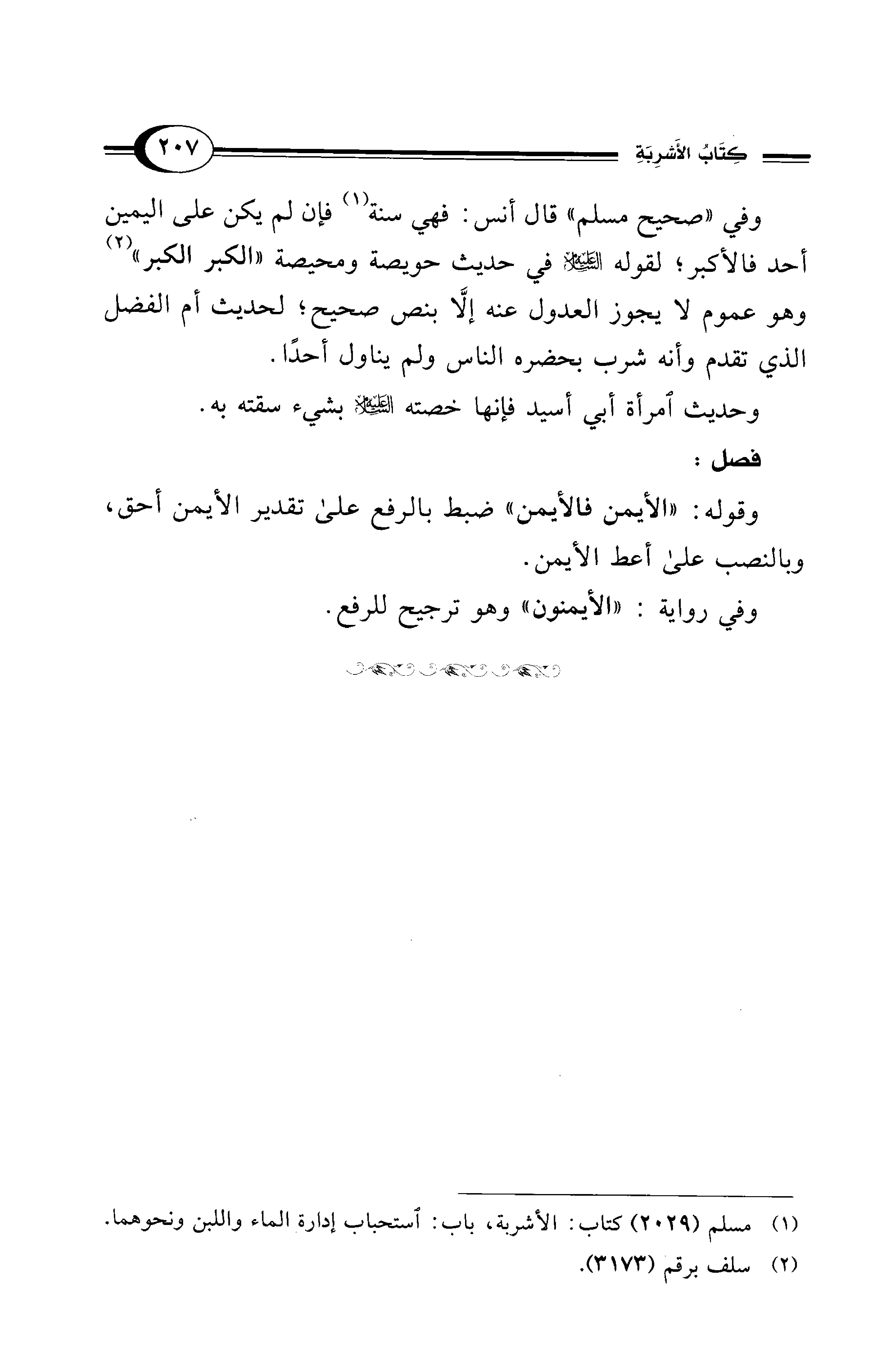 (¬1) مسلم (2029) كتاب: الأشربة، باب: استحباب إدارة الماء واللبن ونحوهما.