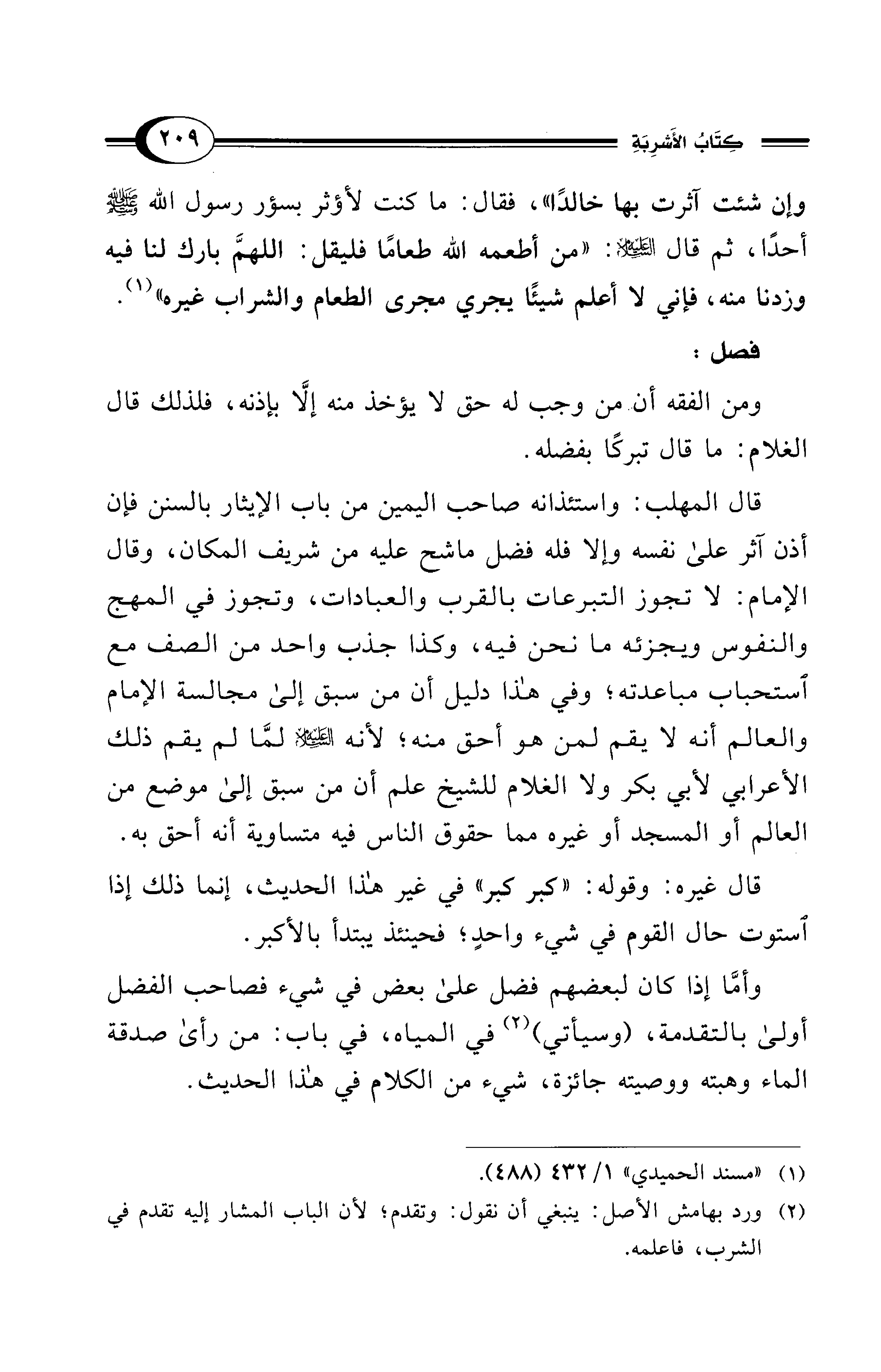 (¬2) ورد بهامش الأصل: ينبغي أن نقول: وتقدم؛ لأن الباب المشار إليه تقدم في الشرب، فاعلمه.