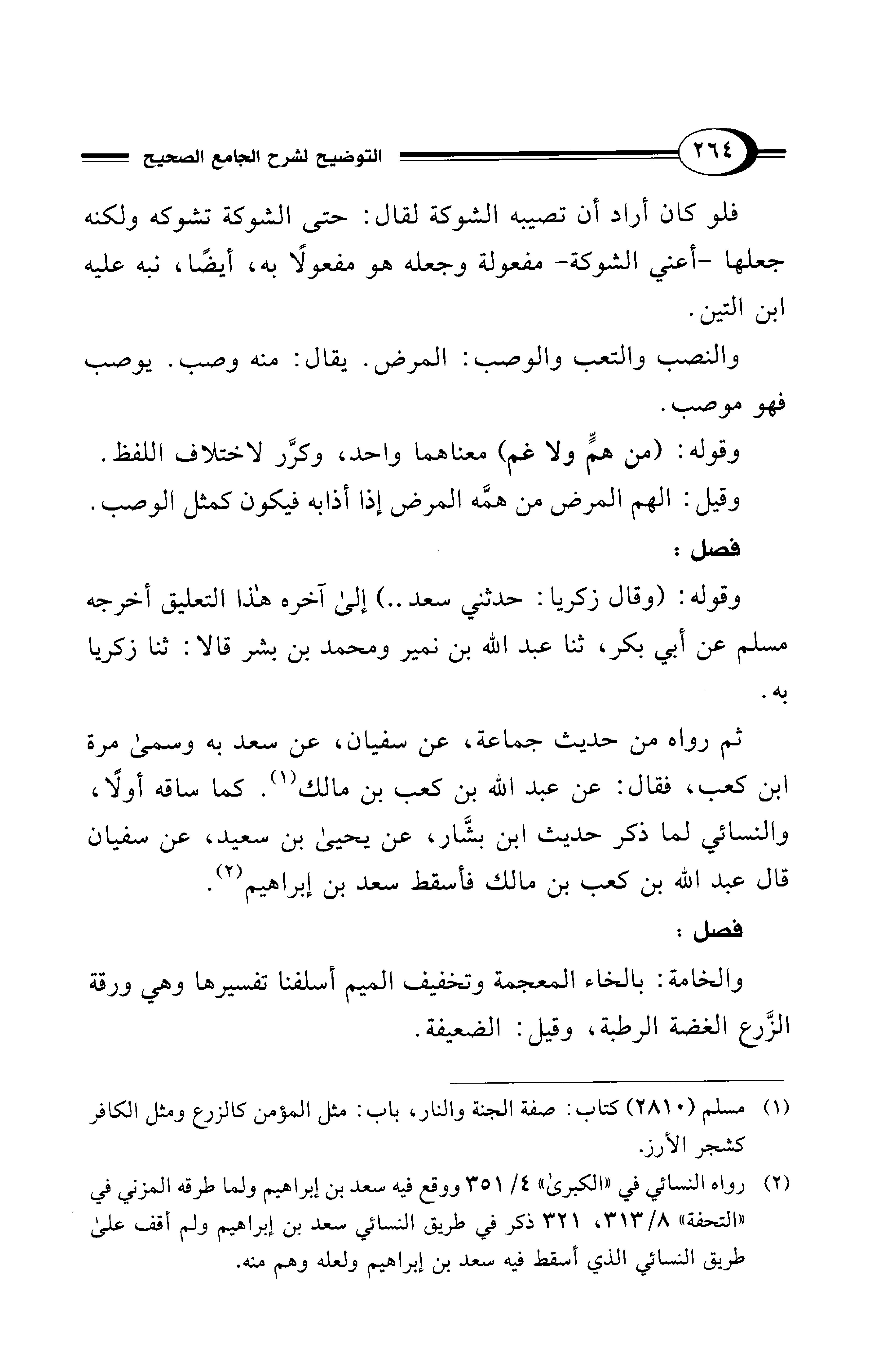 وقوله: (وقال زكريا: حدثني سعد ..) إلى آخره هذا التعليق أخرجه مسلم عن أبي بكر، ثنا عبد الله بن نمير ومحمد بن بشر قالا: ثنا زكريا به.
