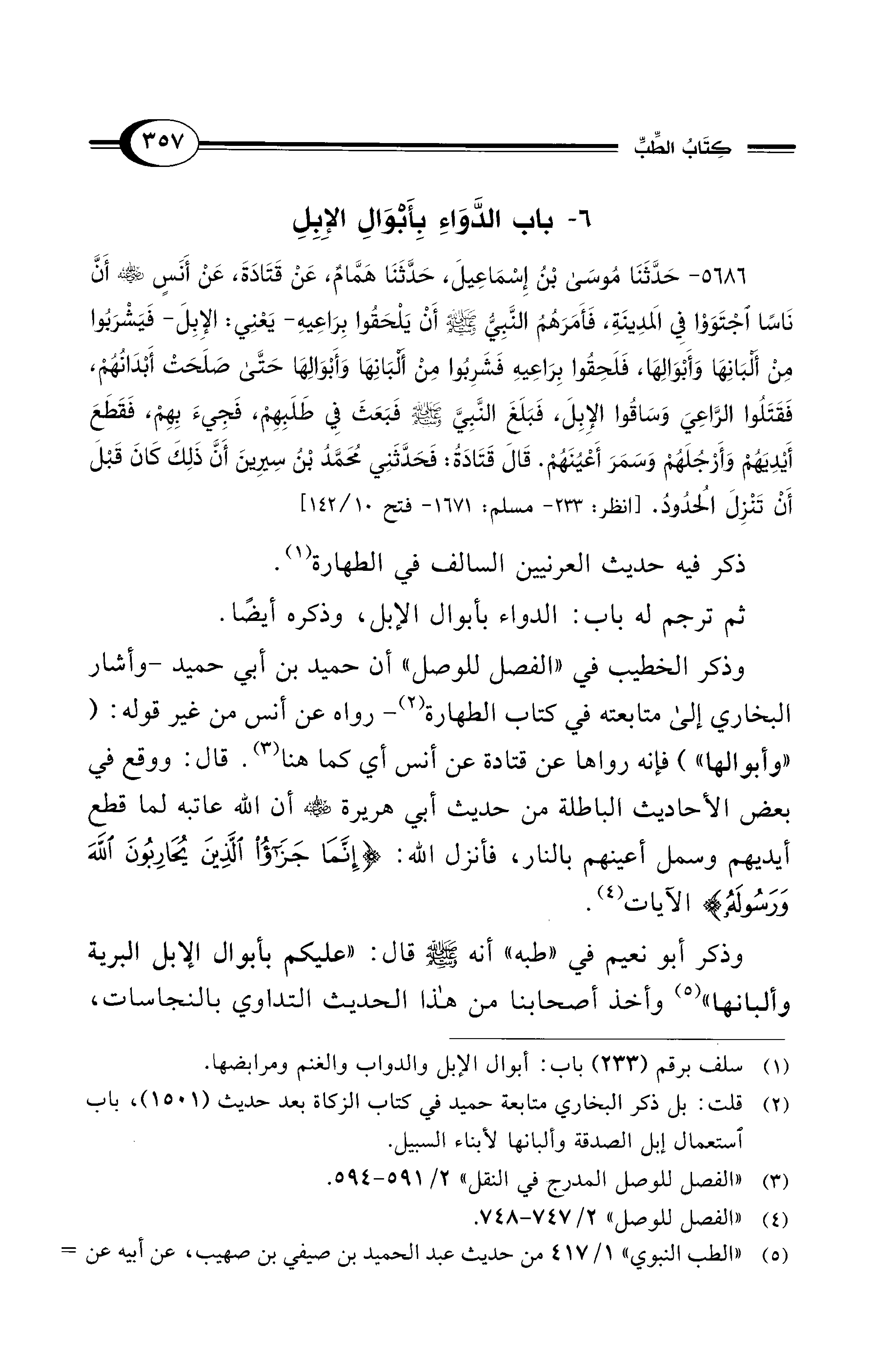 (¬2) قلت: بل ذكر البخاري متابعة حميد في كتاب الزكاة بعد حديث (1501)، باب استعمال إبل الصدقة وألبانها لأبناء السبيل.