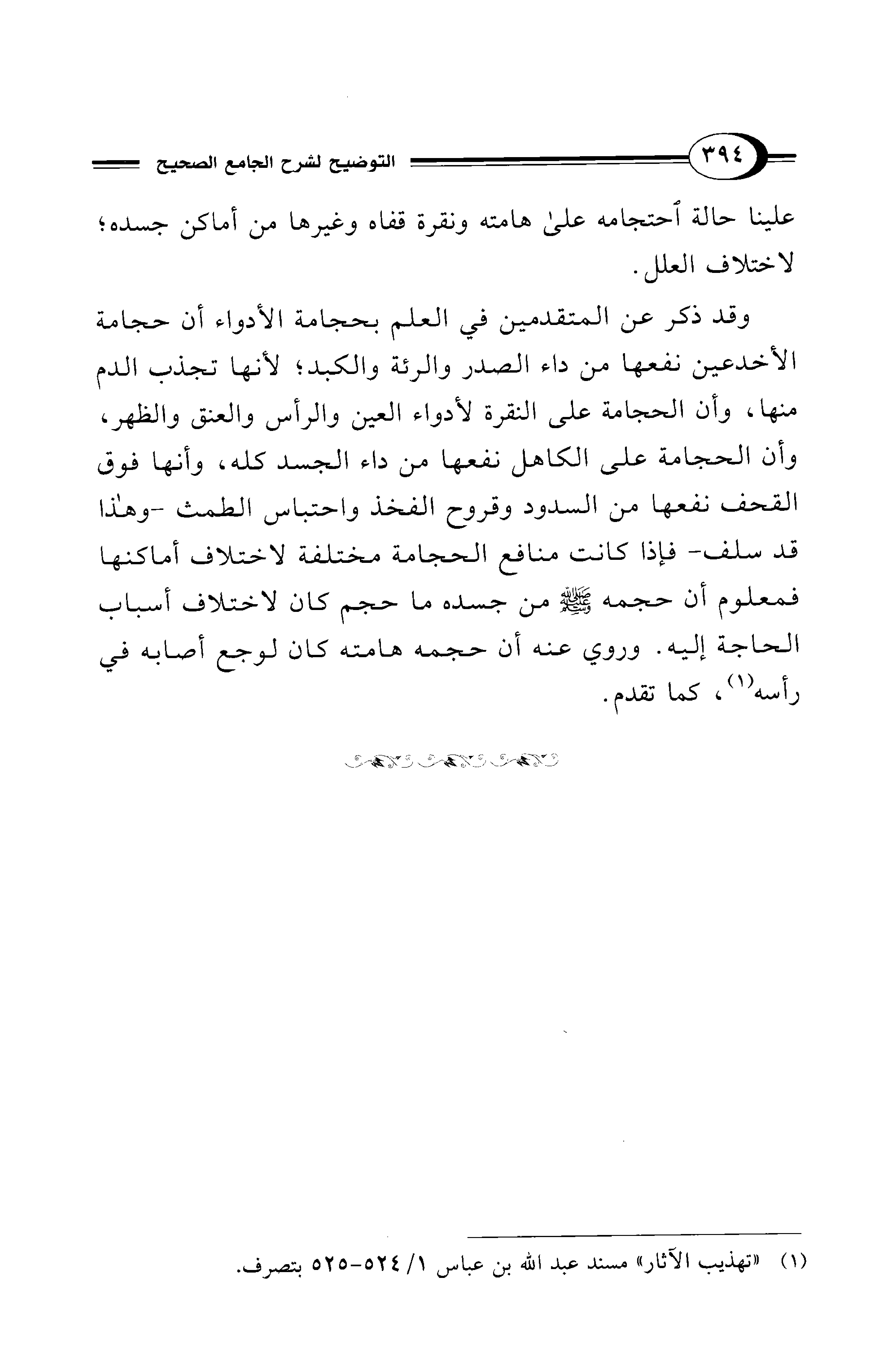 علينا حالة احتجامه على هامته ونقرة قفاه وغيرها من أماكن جسده؛ لاختلاف العلل.