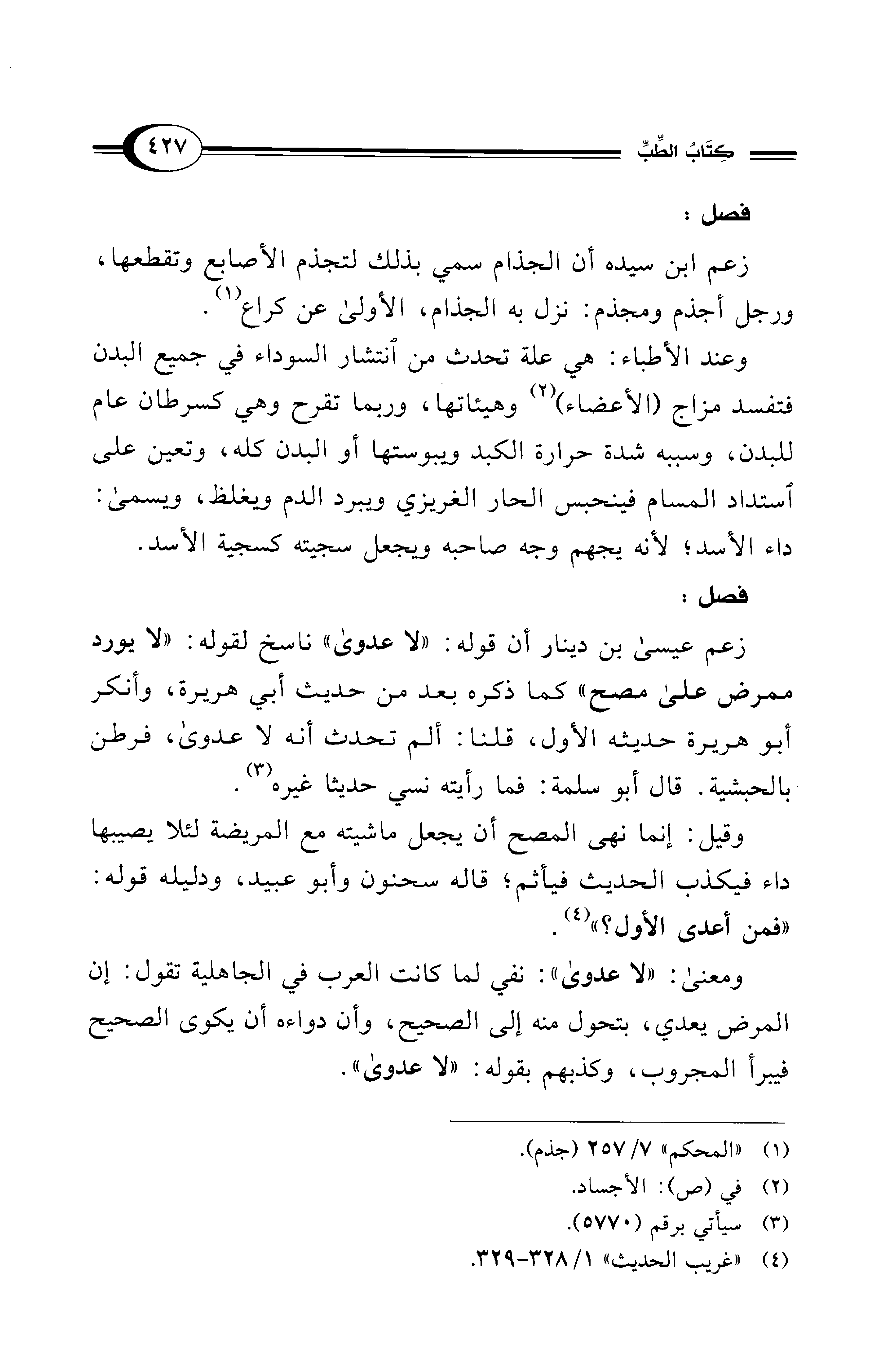 زعم عيسى بن دينار أن قوله: "لا عدوى" ناسخ لقوله: "لا يورد ممرض على مصح" كما ذكره بعد من حديث أبي هريرة، وأنكر أبو هريرة حديثه الأول، قلنا: ألم تحدث أنه لا عدوى، فرطن بالحبشية. قال أبو سلمة: فما رأيته نسي حديثا غيره (¬3).