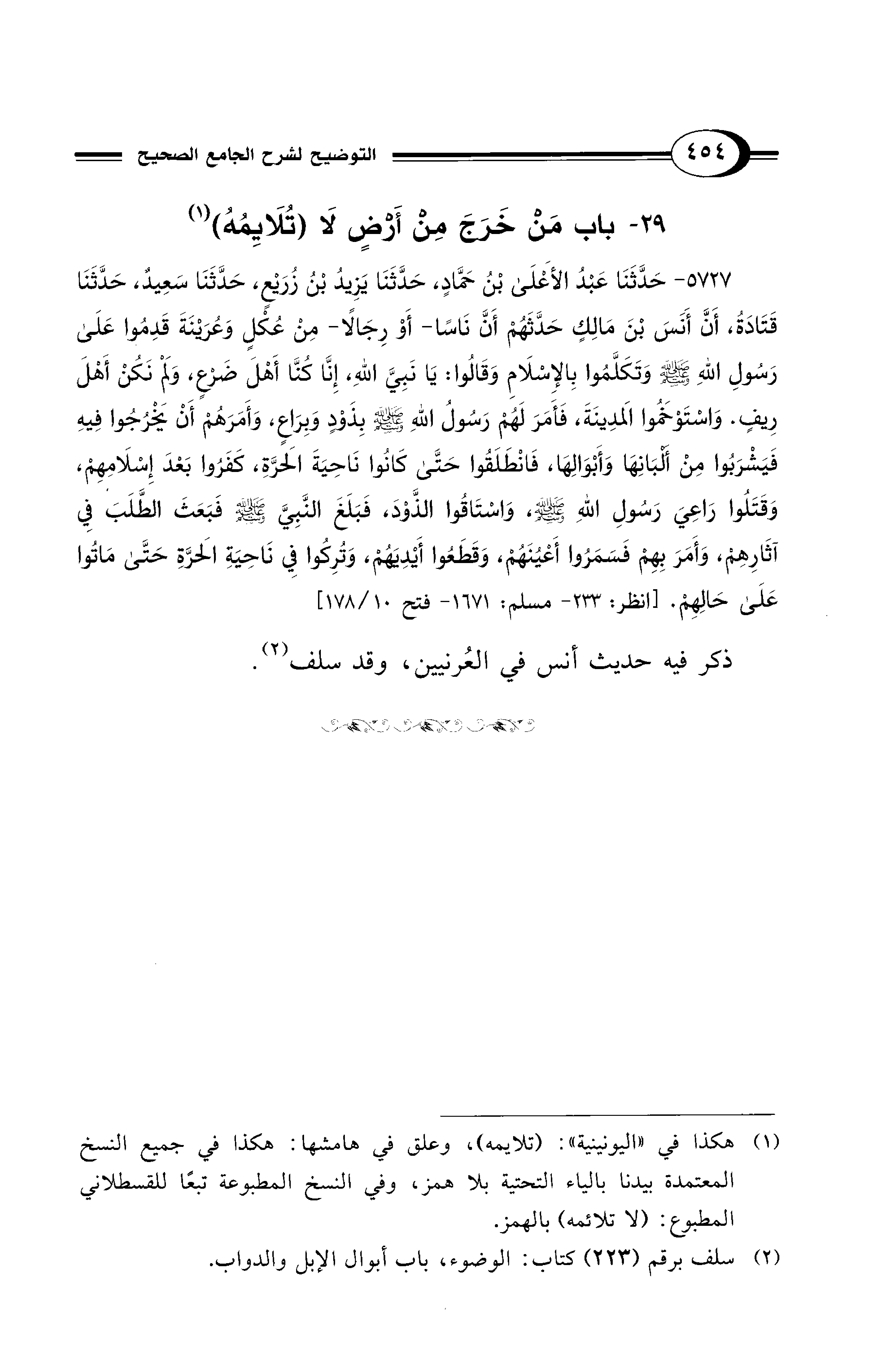 (¬2) سلف برقم (223) كتاب: الوضوء، باب أبوال الإبل والدواب.