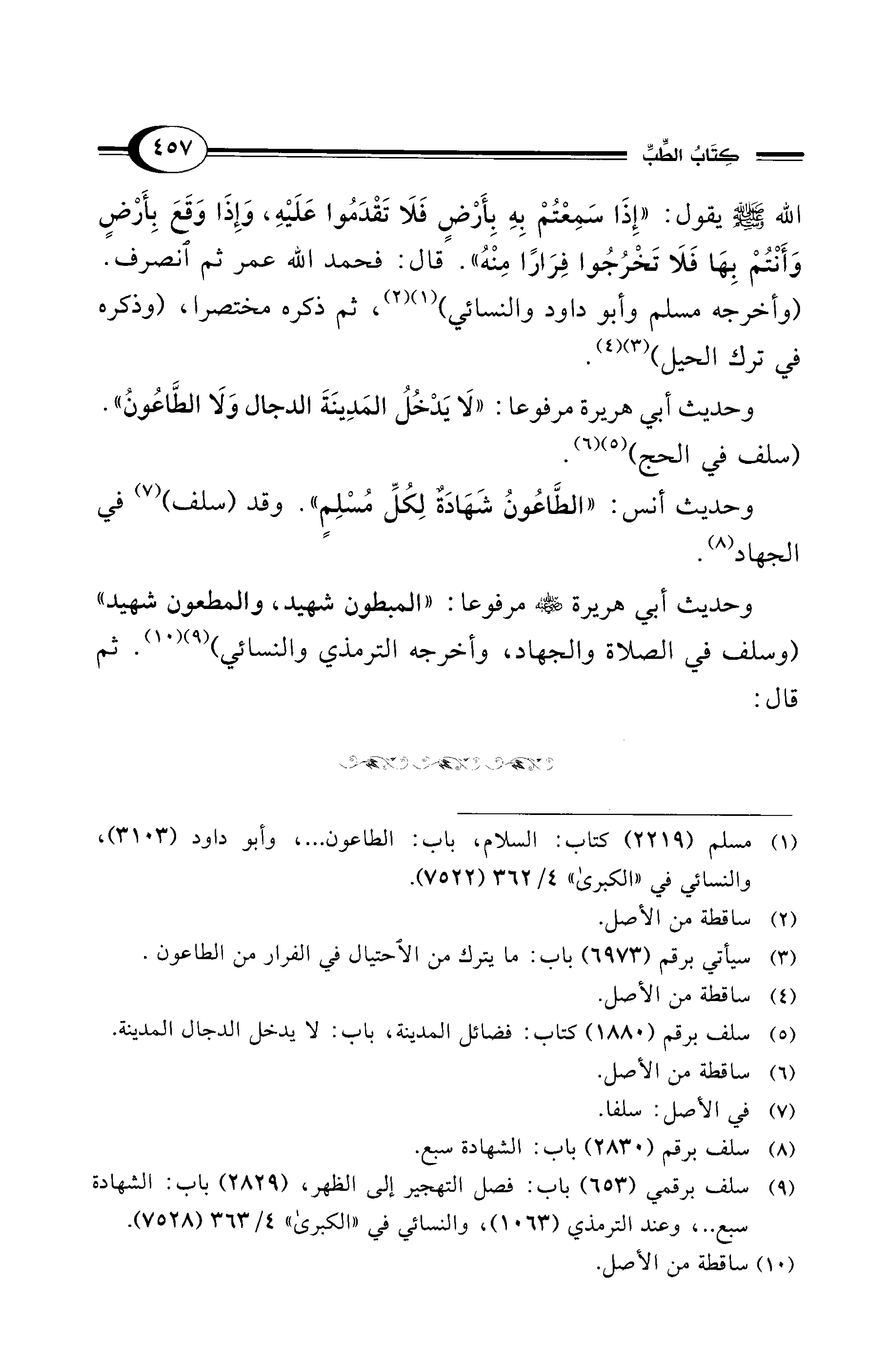 (¬1) مسلم (2219) كتاب: السلام، باب: الطاعون ... ، وأبو داود (3103)، والنسائي في "الكبرى" 4/ 362 (7522).