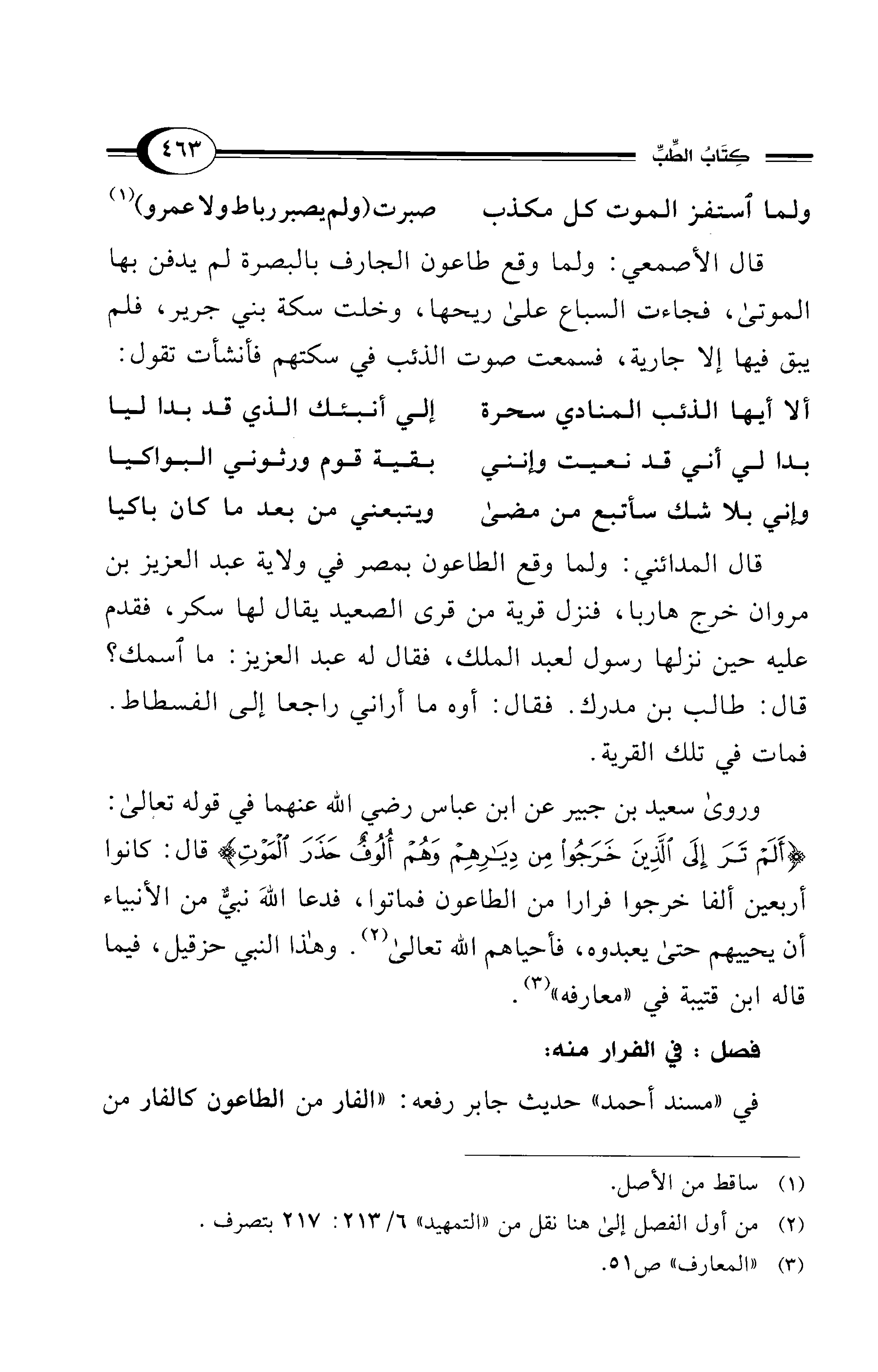 في "مسند أحمد" حديث جابر رفعه: "الفار من الطاعون كالفار من