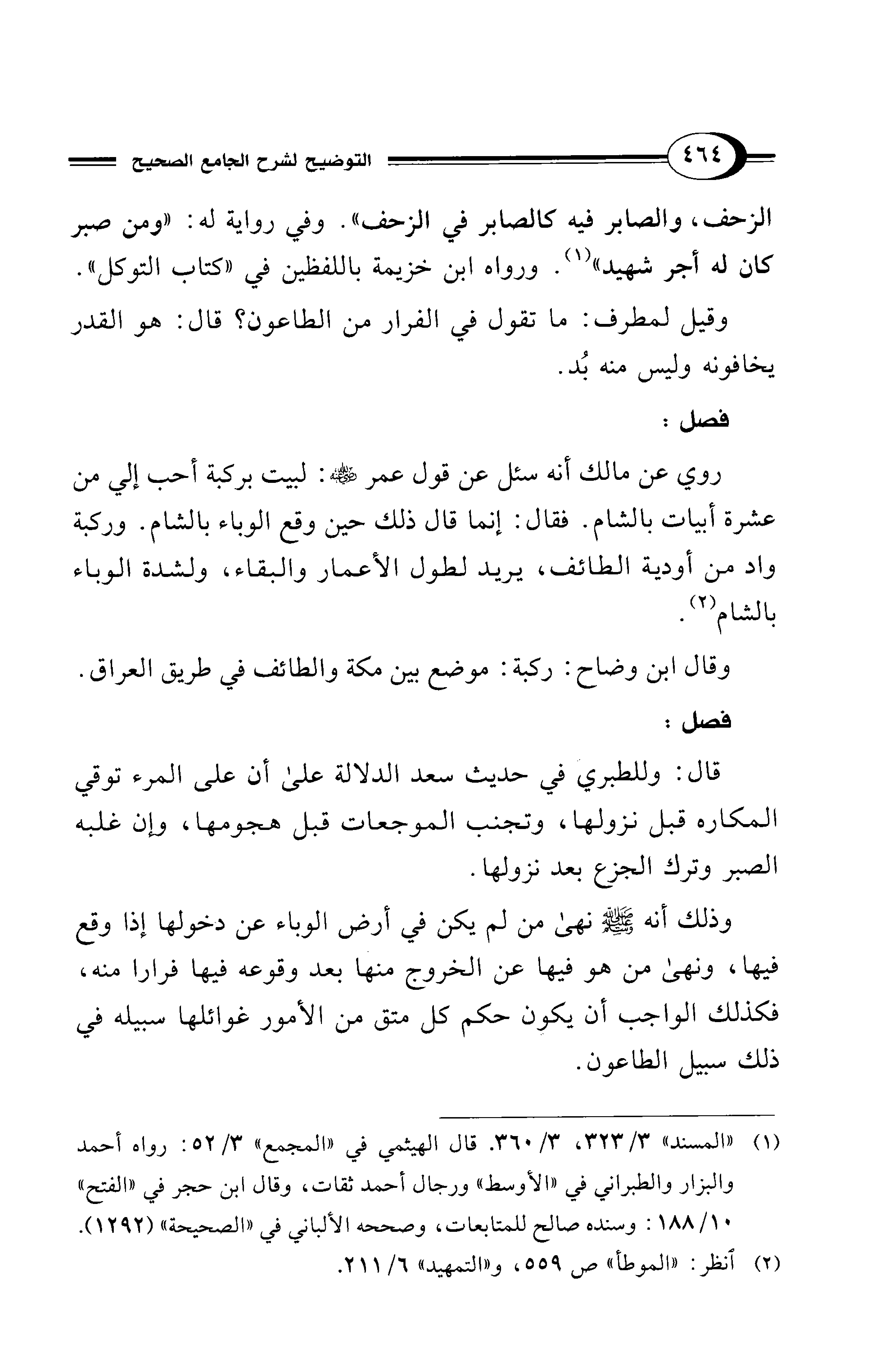 روي عن مالك أنه سئل عن قول عمر - رضي الله عنه -: لبيت بركبة أحب إلى من عشرة أبيات بالشام. فقال: إنما قال ذلك حين وقع الوباء بالشام. وركبة واد من أودية الطائف، يريد لطول الأعمار والبقاء، ولشدة الوباء بالشام (¬2).