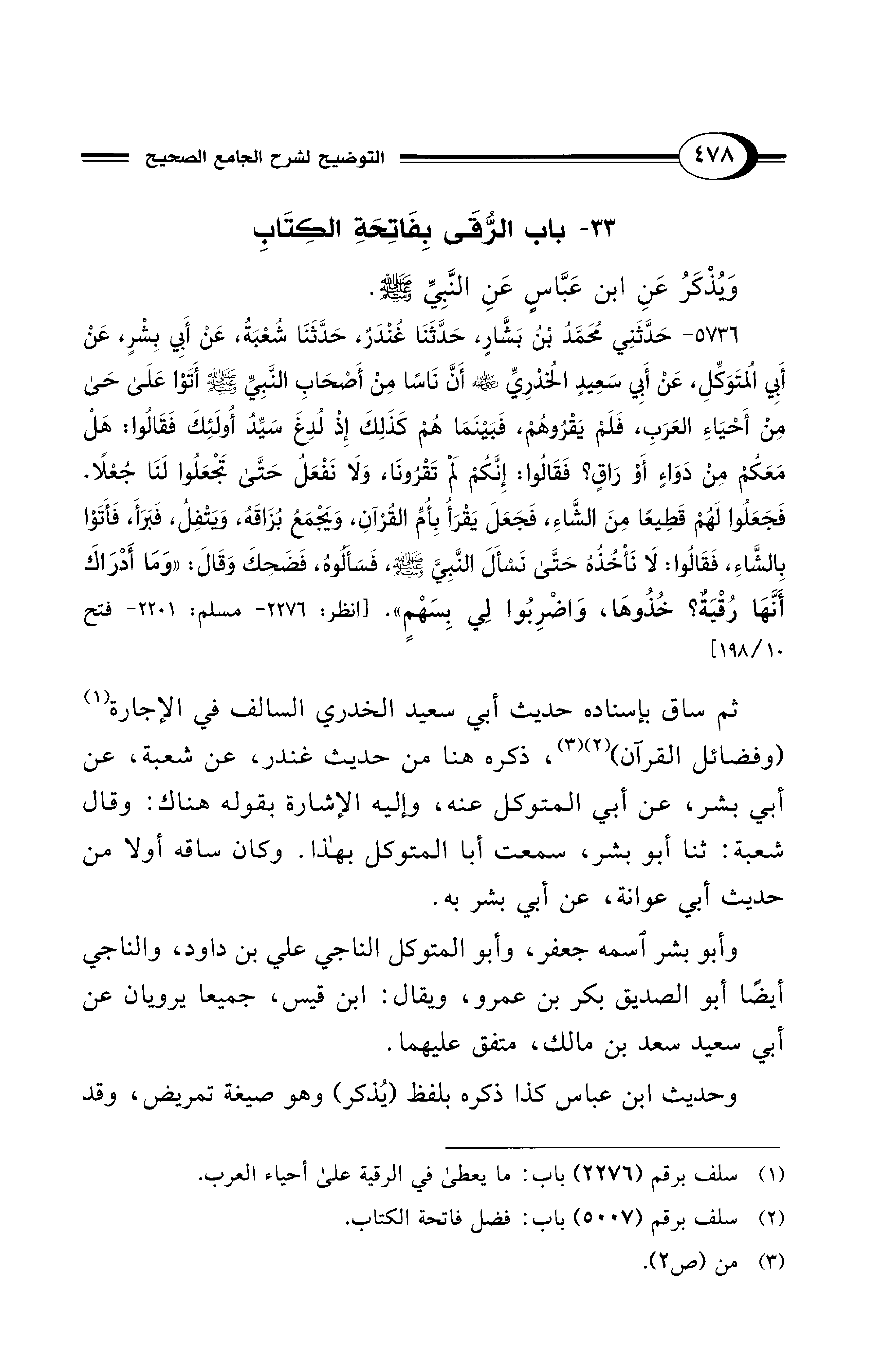 33 - باب الرُّقَى بِفَاتِحَةِ الكِتَابِ