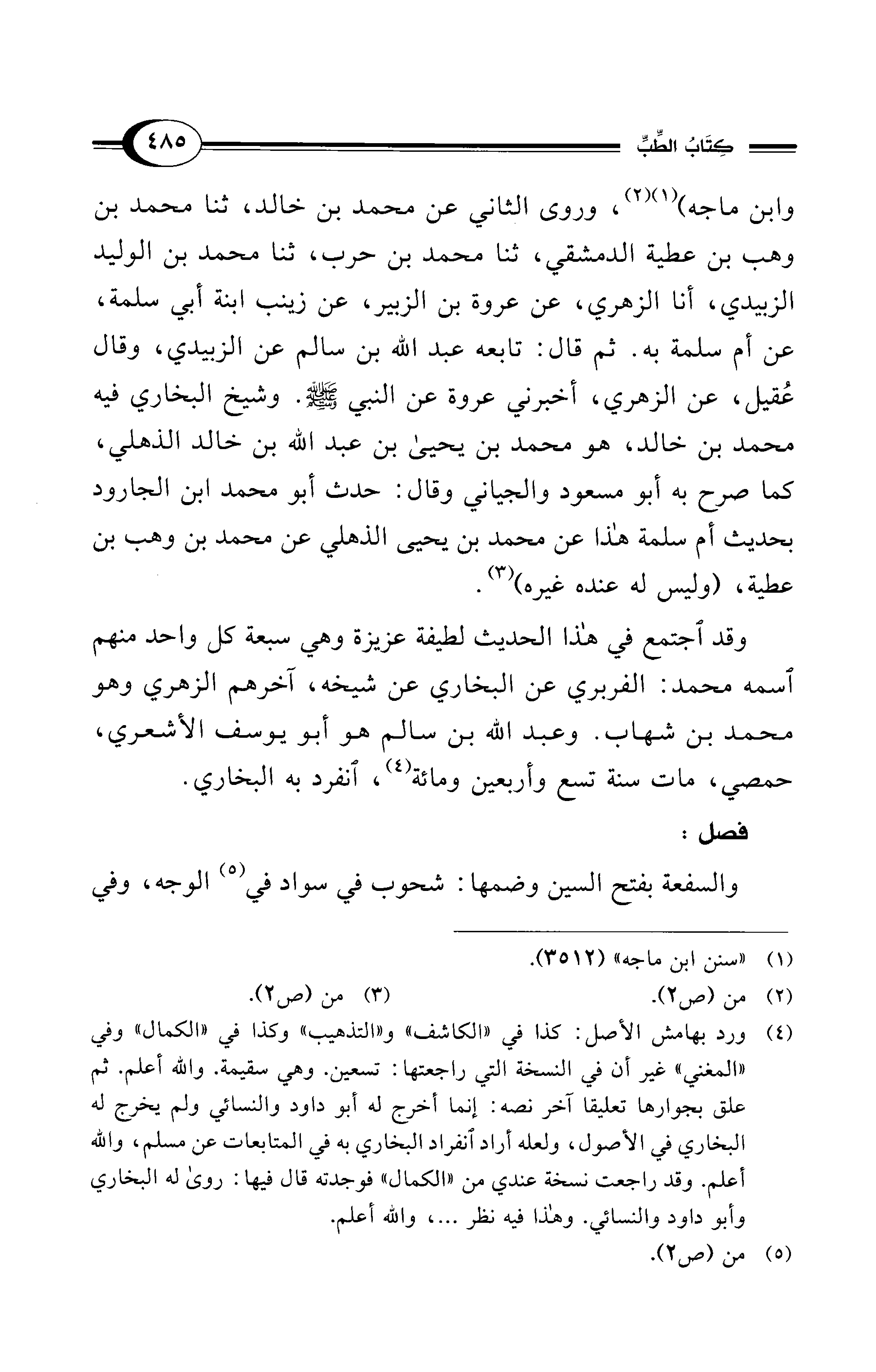 وقد اجتمع في هذا الحديث لطيفة عزيزة وهي سبعة كل واحد منهم اسمه محمد: الفربري عن البخاري عن شيخه، آخرهم الزهري وهو محمد بن شهاب. وعبد الله بن سالم هو أبو يوسف الأشعري، حمصي، مات سنة تسع وأربعين ومائة (¬4)، انفرد به البخاري.