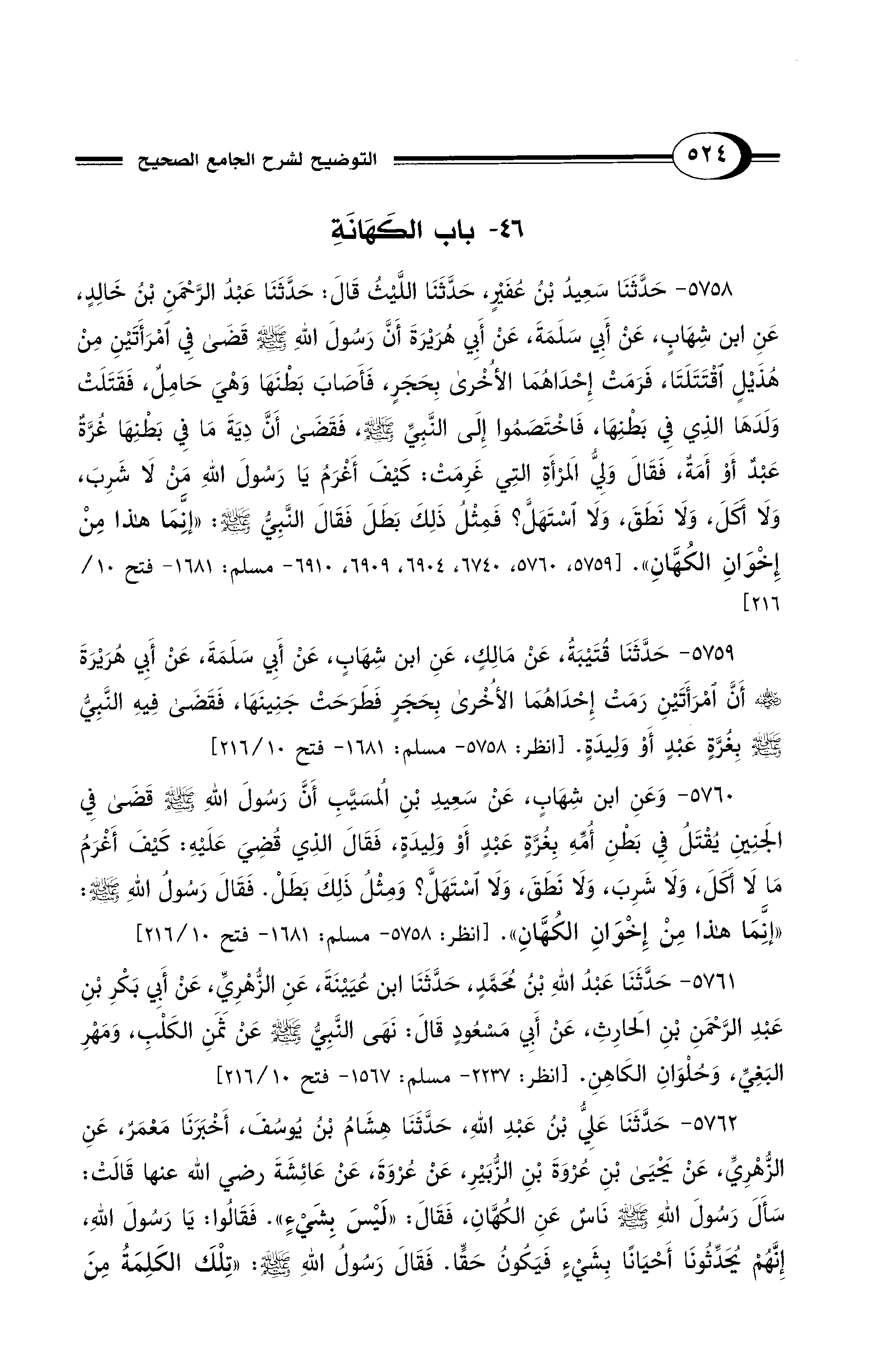 46 - باب الكَهَانَةِ
