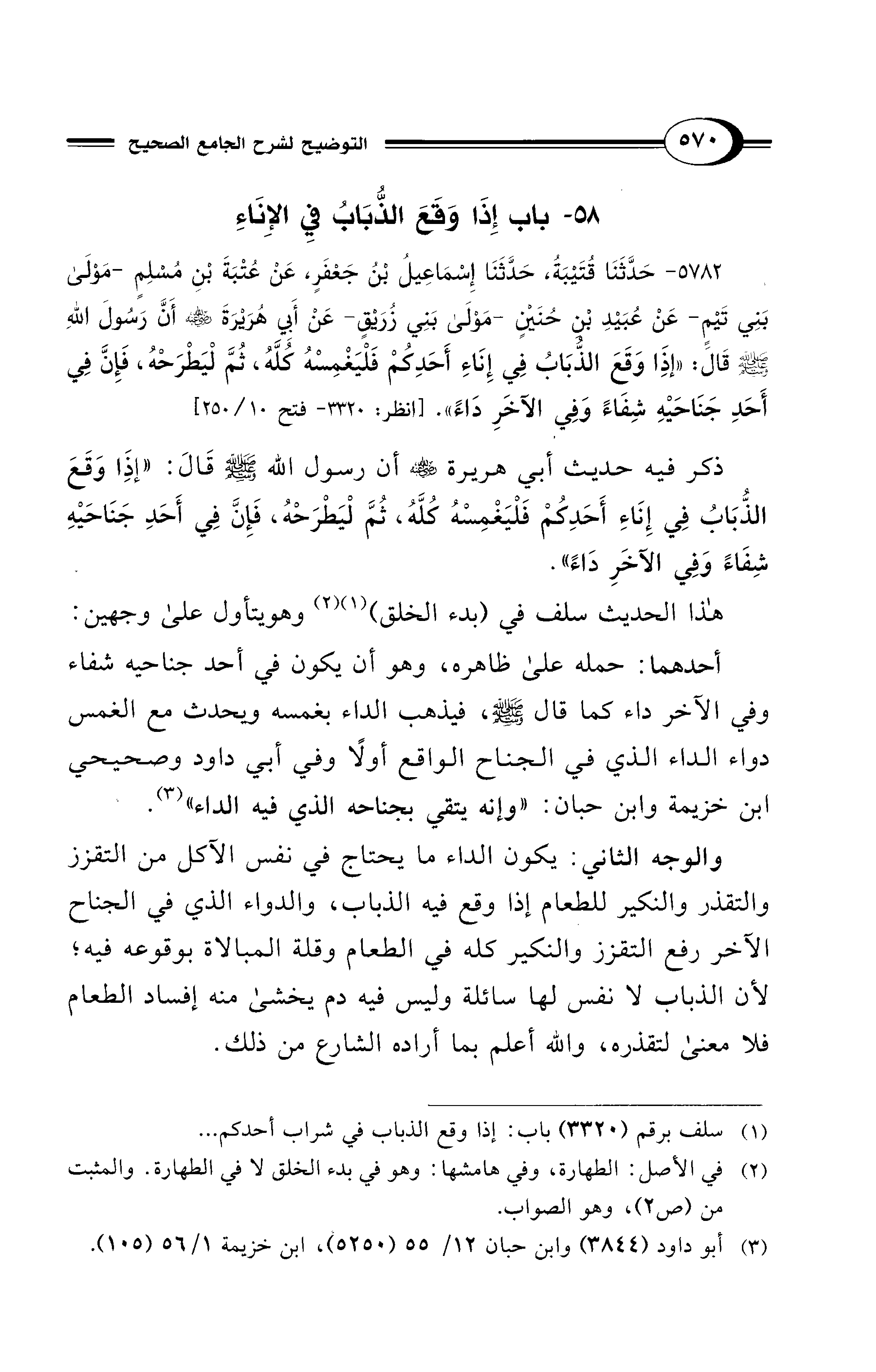 (¬1) سلف برقم (3320) باب: إذا وقع الذباب في شراب أحدكم ...