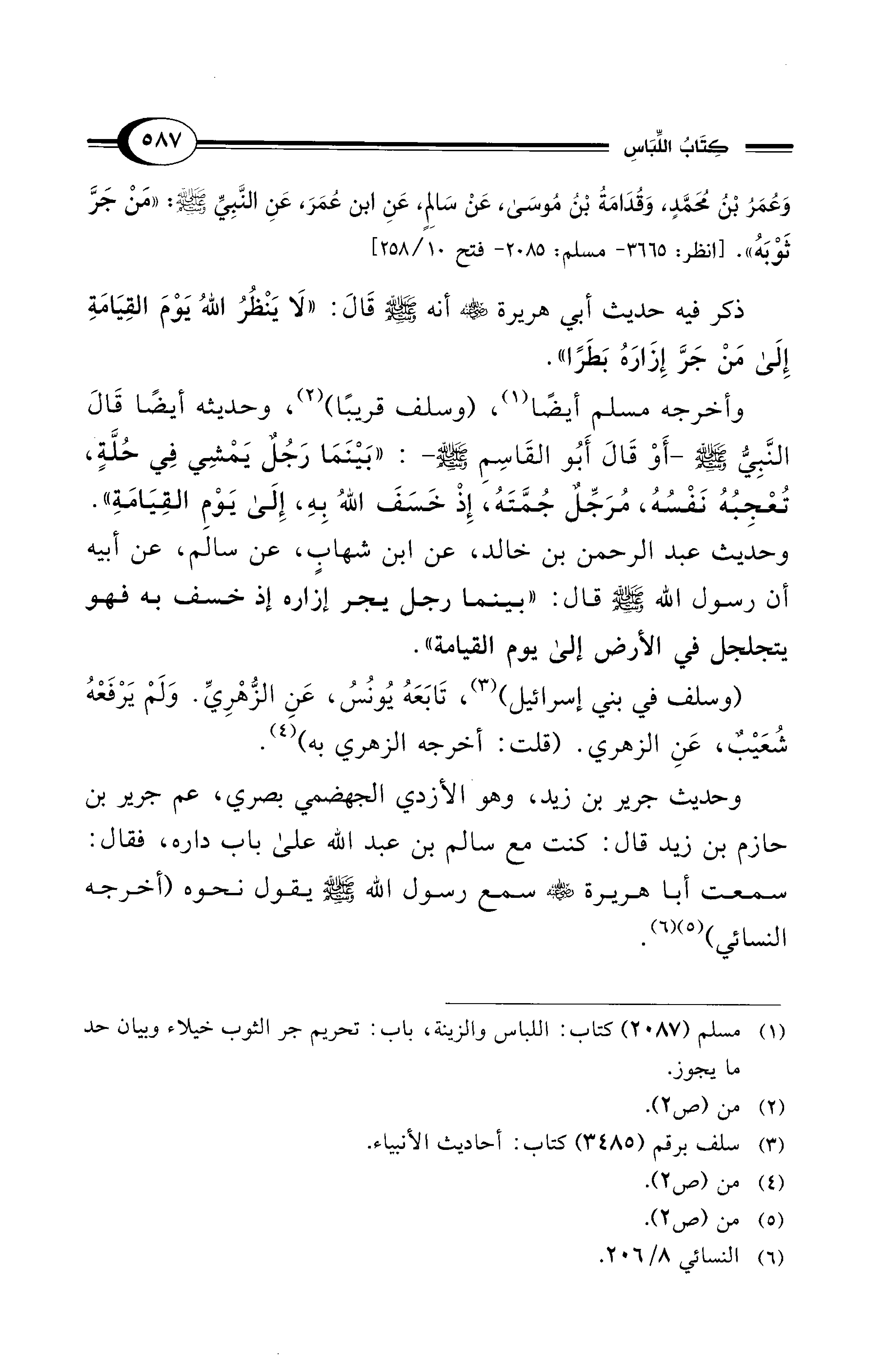 (¬1) مسلم (2087) كتاب: اللباس والزينة، باب: تحريم جر الثوب خيلاء وبيان حد ما يجوز.
