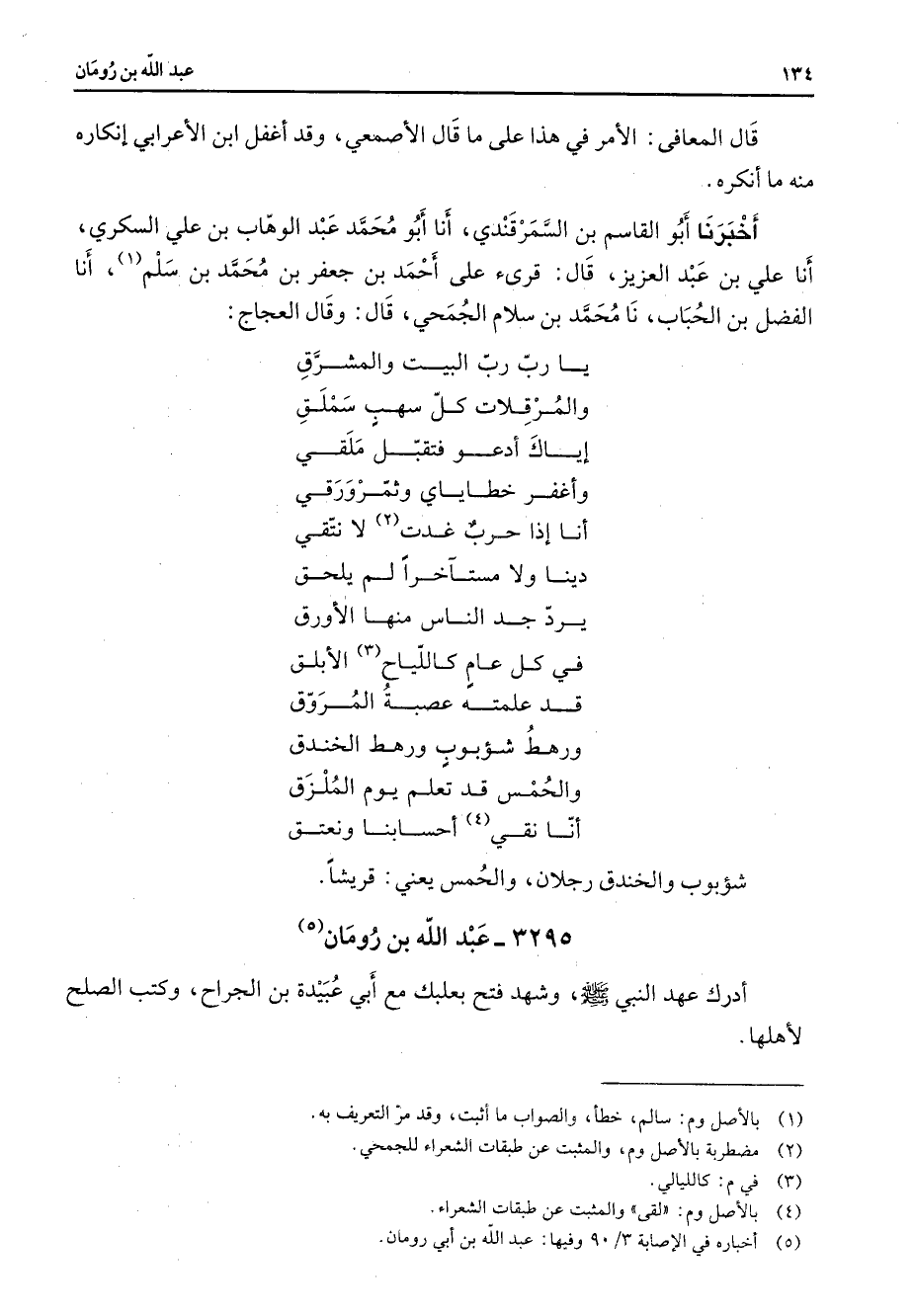 (5) أخباره في الإصابة 3 / 90 وفيها: عبد الله بن أبي رومان